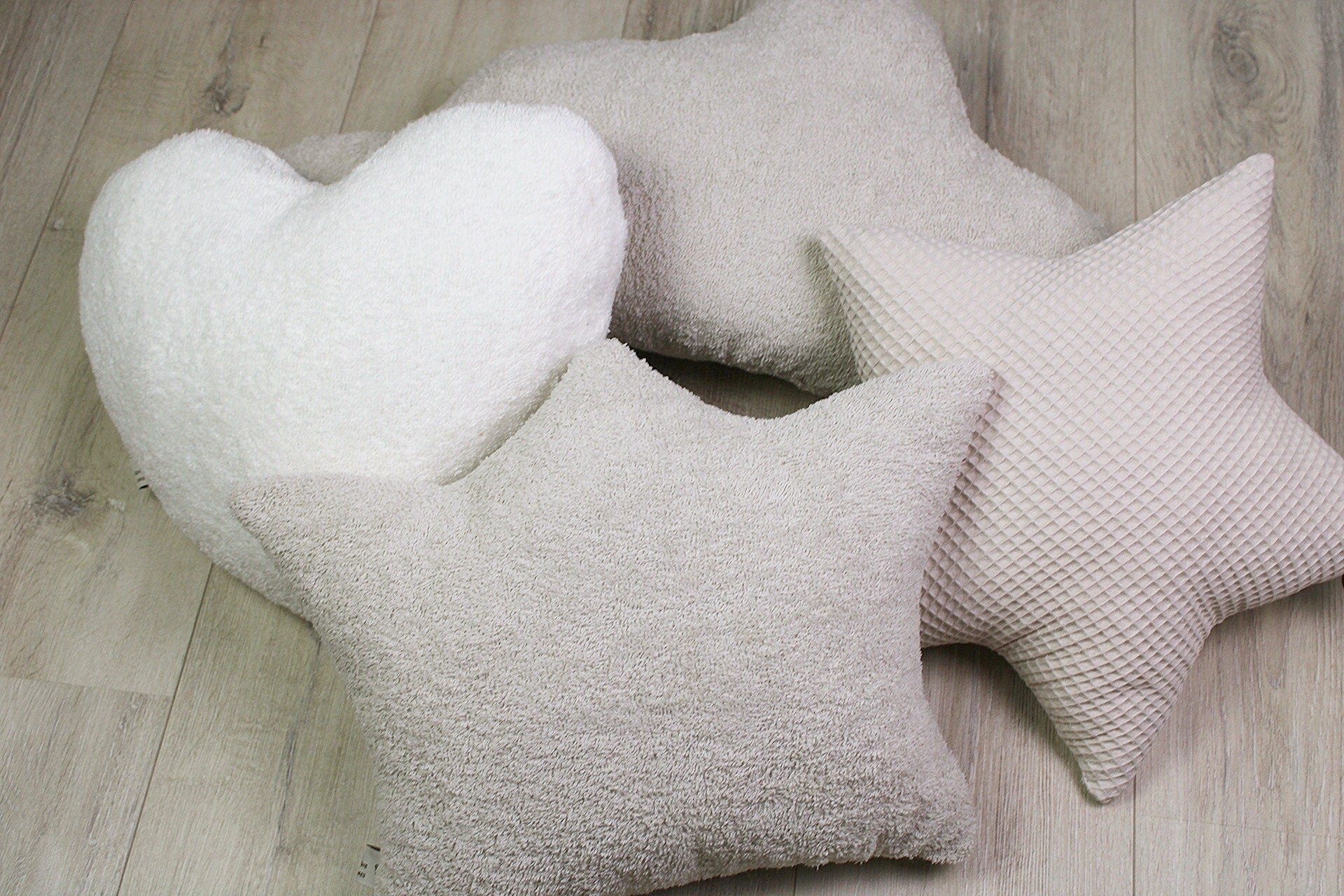 Die Kissen sind mit Faserbällchen gefüllt, angenehm weich und bei 30 Grad Feinwäsche waschbar.