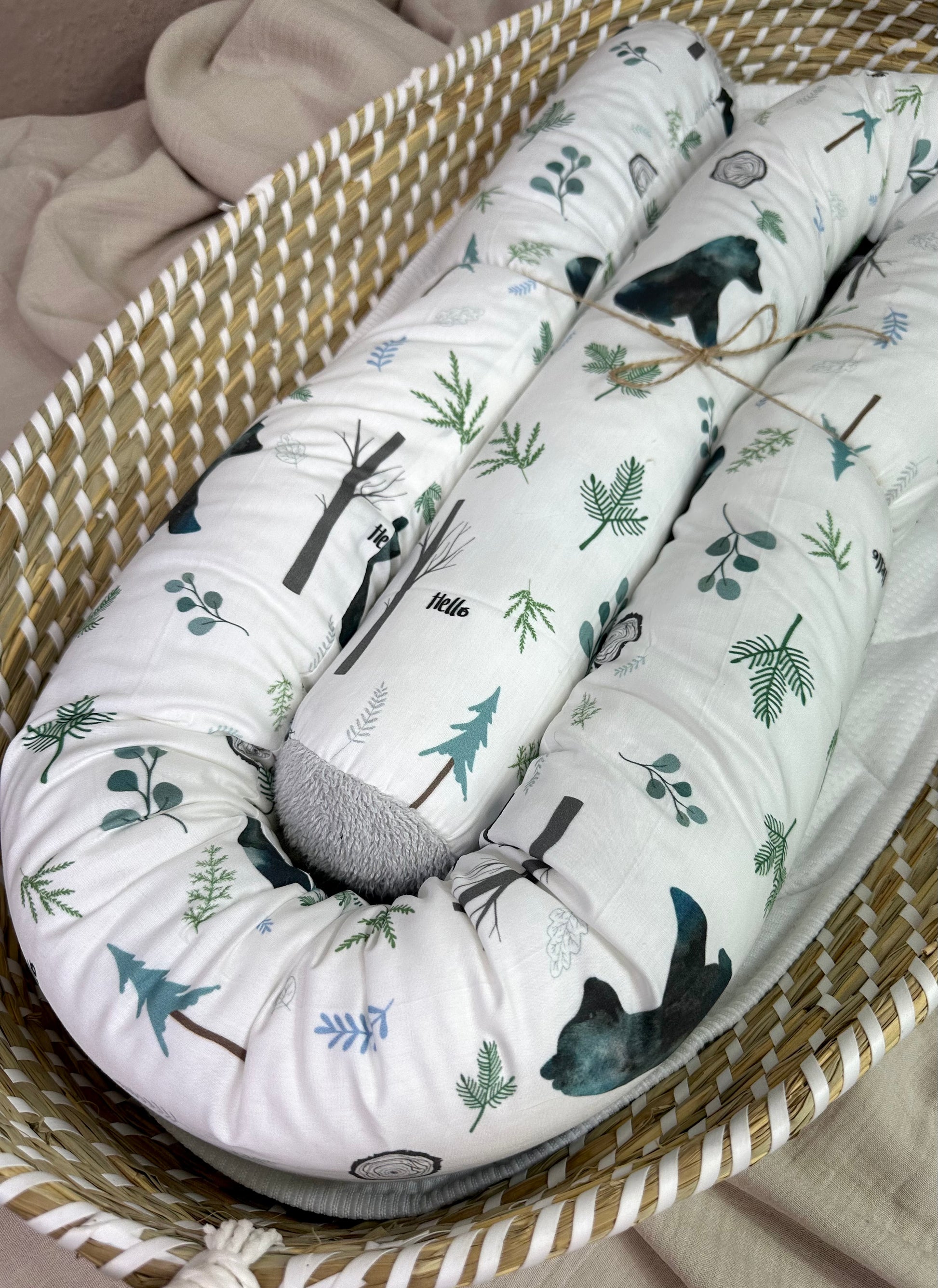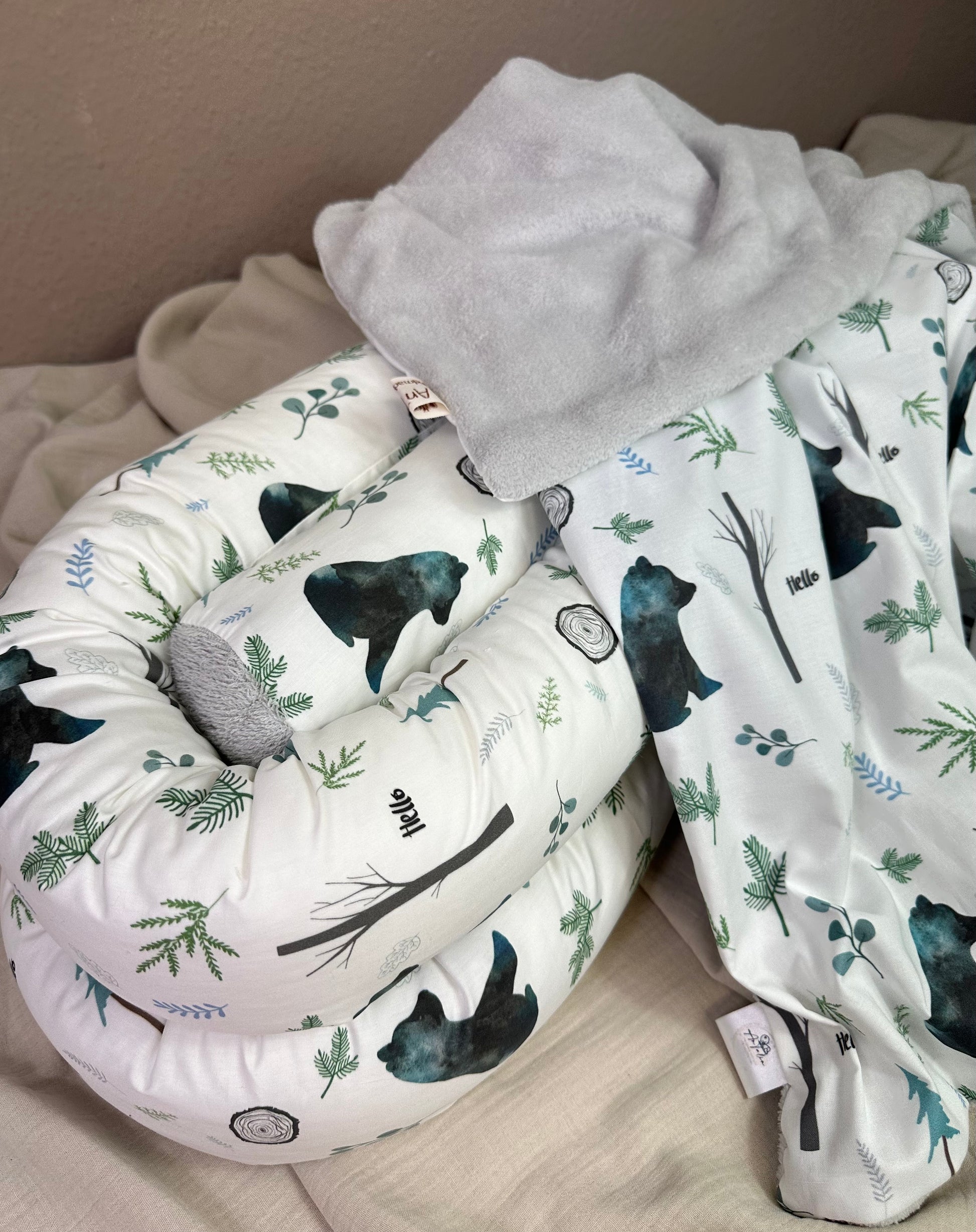Unsere kuschelige Bettschlange bietet ihrem Baby Geborgenheit und Sicherheit.