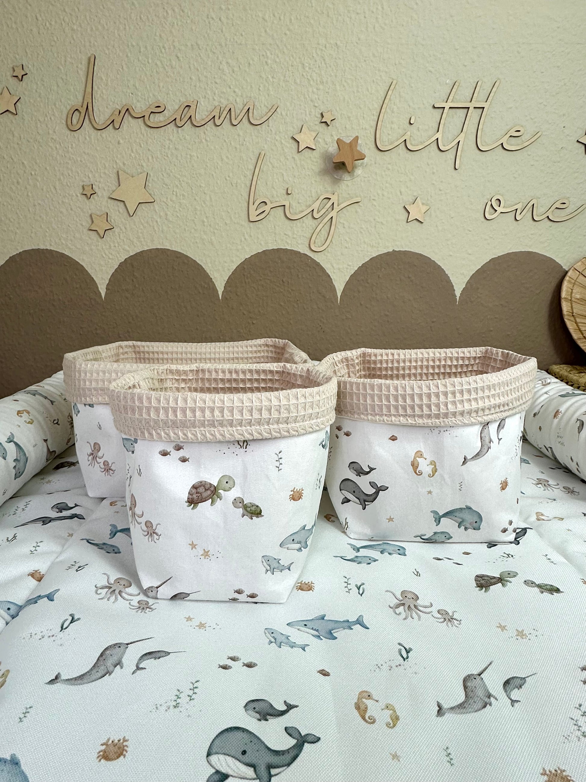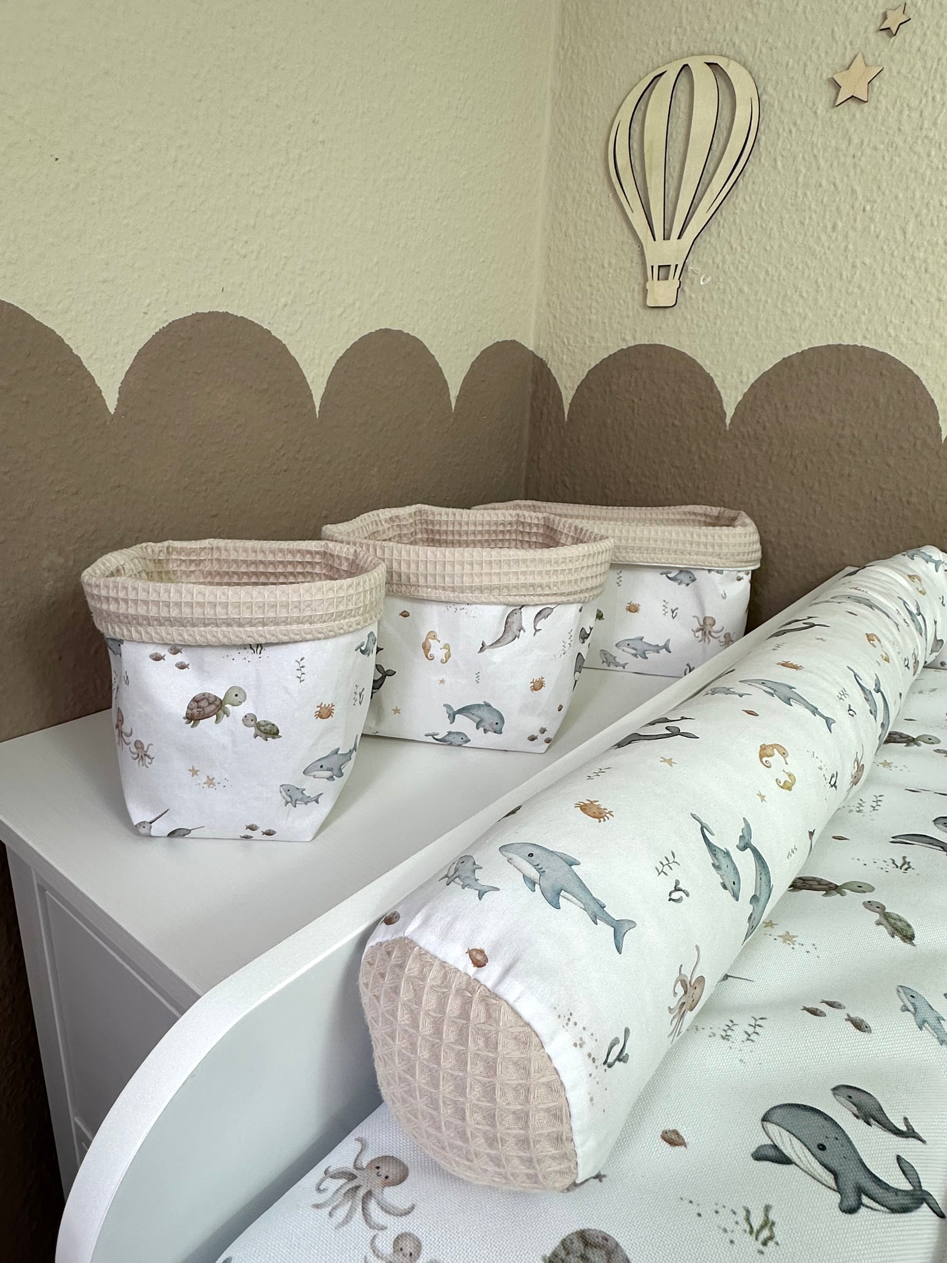 Die Utensilo sind perfekt für Deinen Wickeltisch geeignet. Die unterschiedlichen Größen bieten Platz für Windeln, Feuchtücher, Creme und Co.