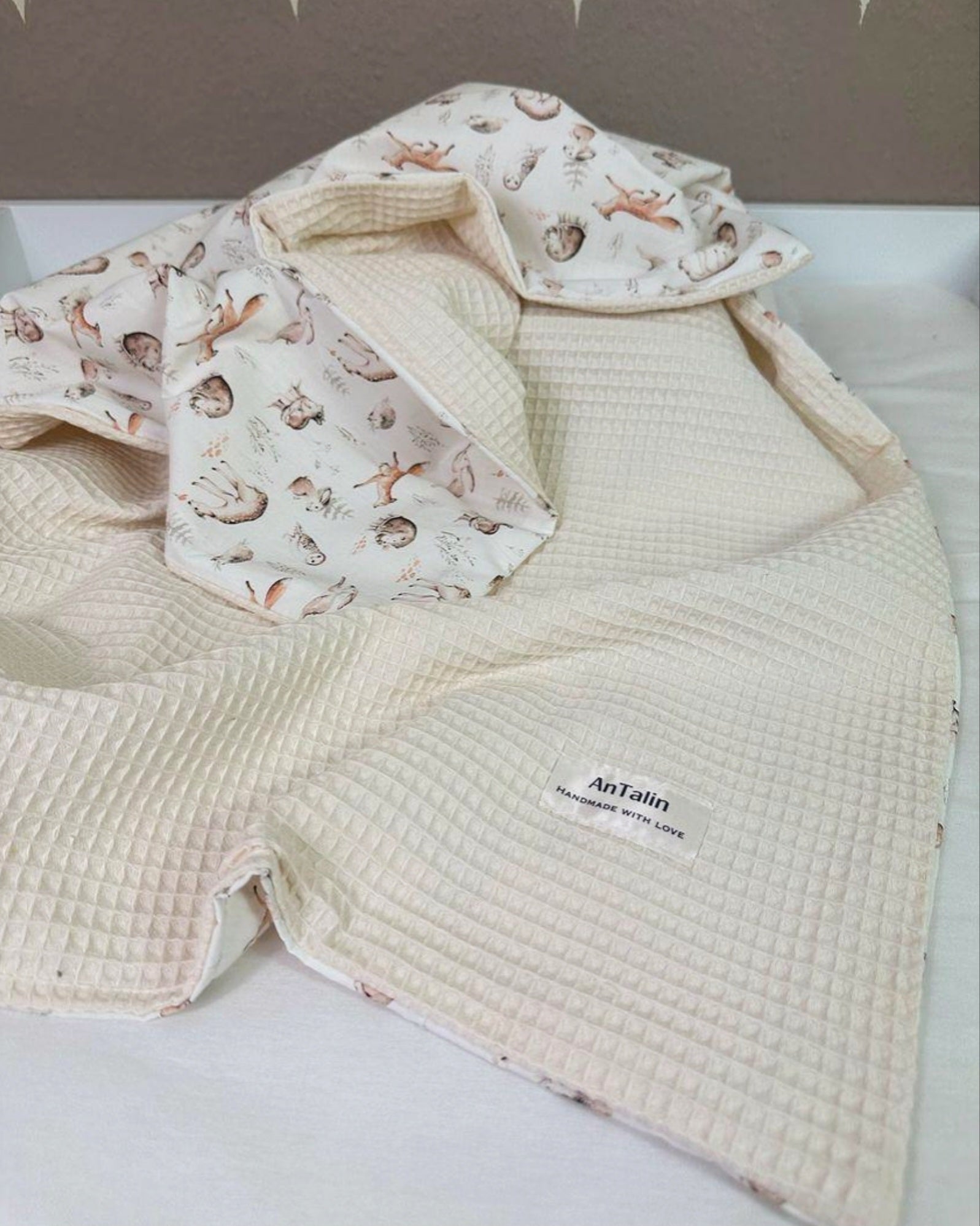 Babydecke Waldbewohner waffelpique