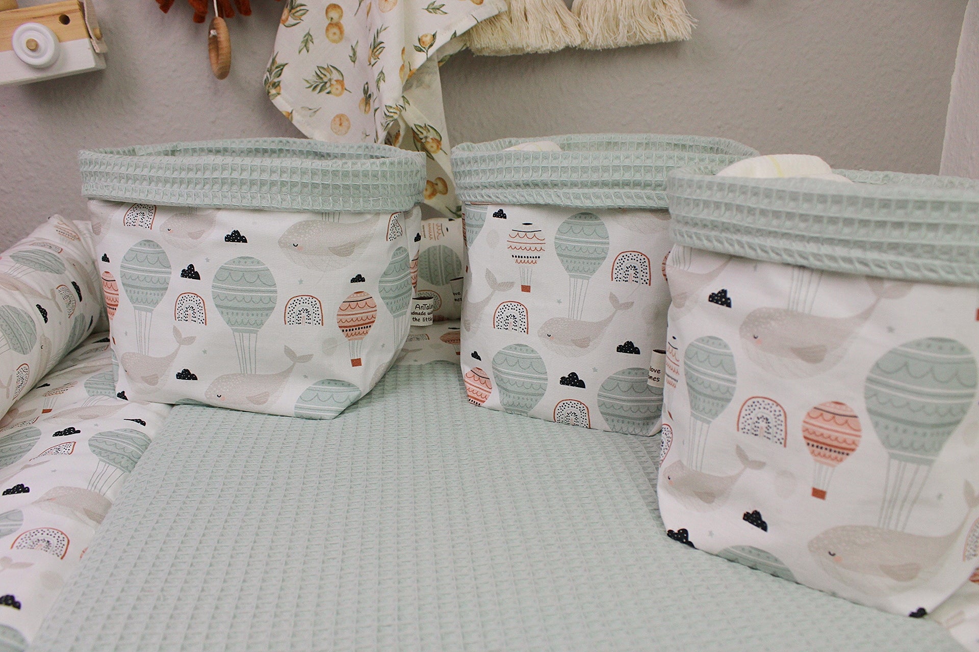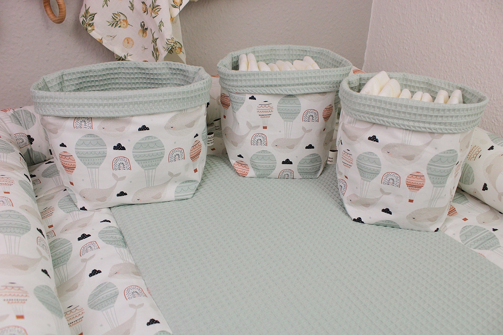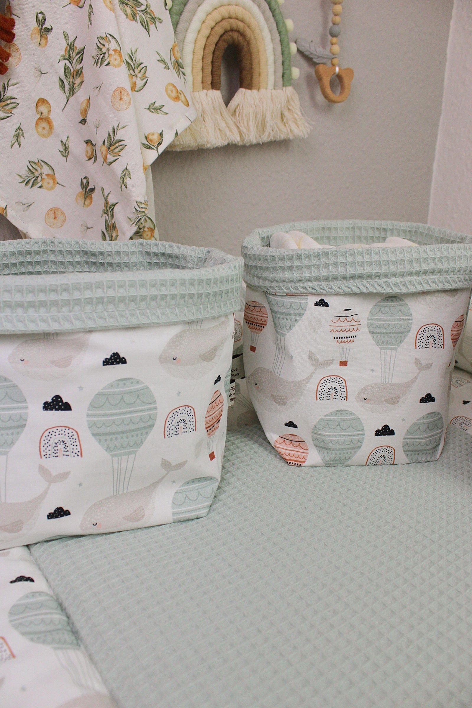 Die Utensilo sind perfekt für Deinen Wickeltisch geeignet. Die unterschiedlichen Größen bieten Platz für Windeln, Feuchtücher, Creme und Co.
