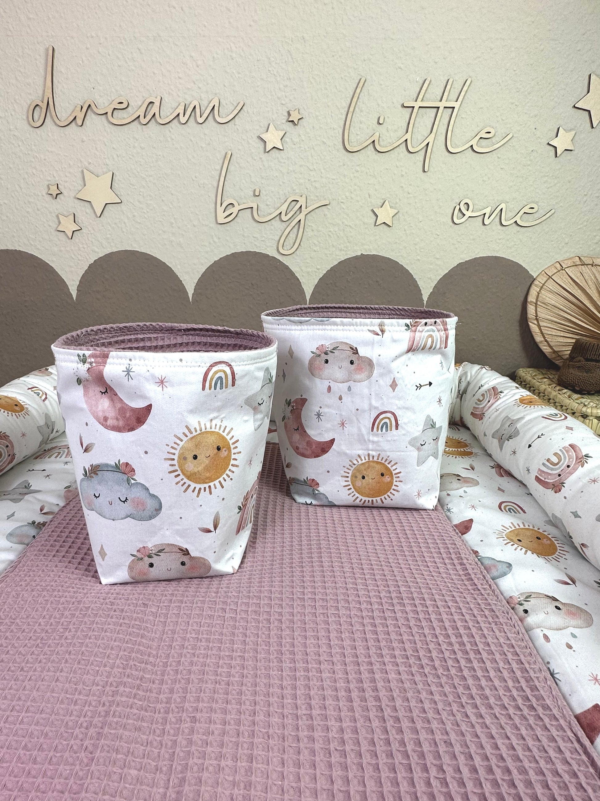 Die Utensilo sind perfekt für Deinen Wickeltisch geeignet. Die unterschiedlichen Größen bieten Platz für Windeln, Feuchtücher, Creme und Co.