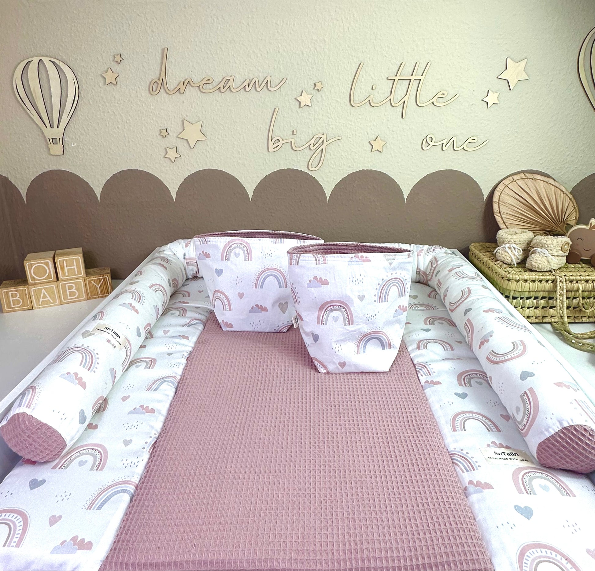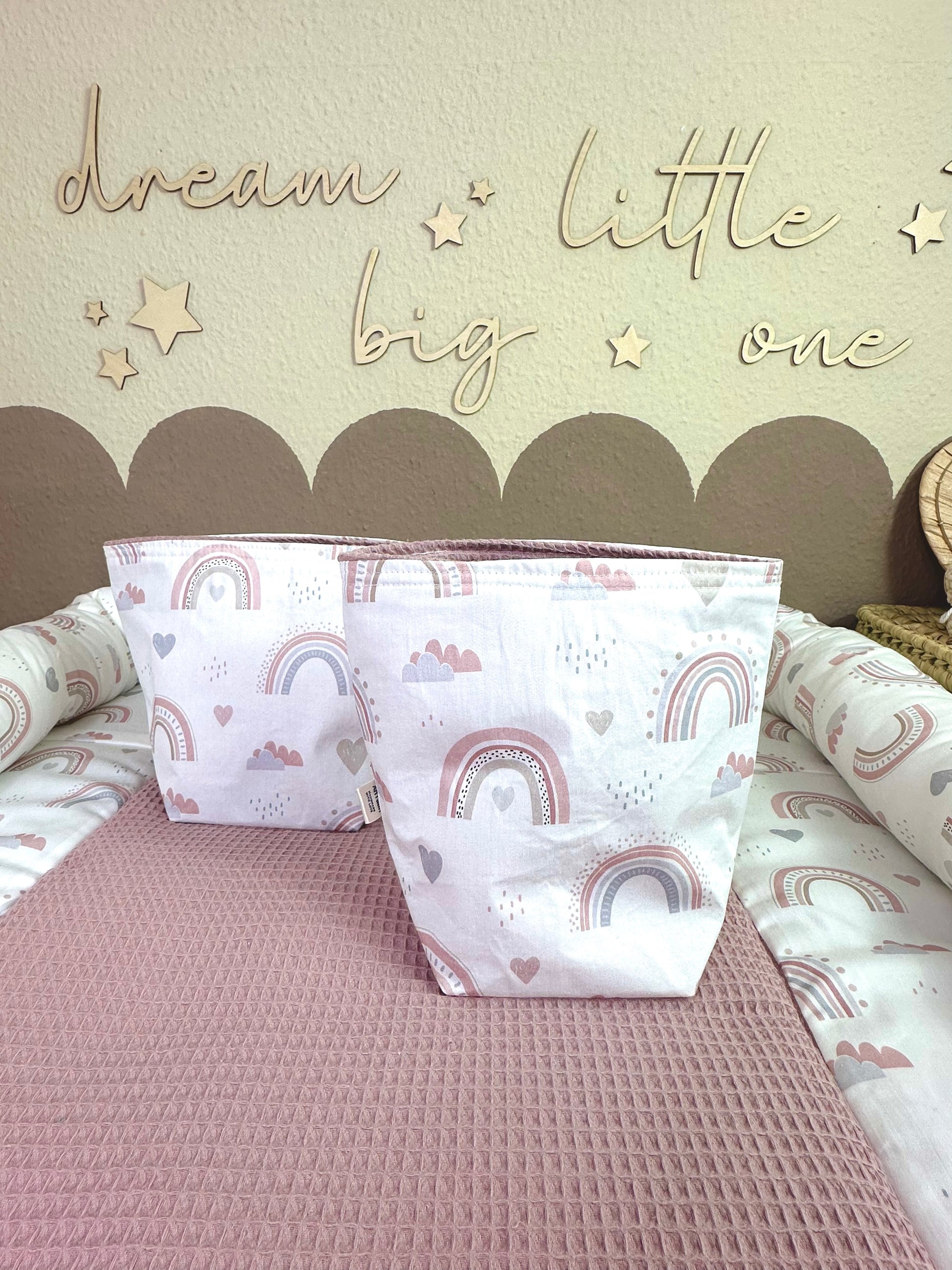 Die Utensilo sind perfekt für Deinen Wickeltisch geeignet. Die unterschiedlichen Größen bieten Platz für Windeln, Feuchtücher, Creme und Co.