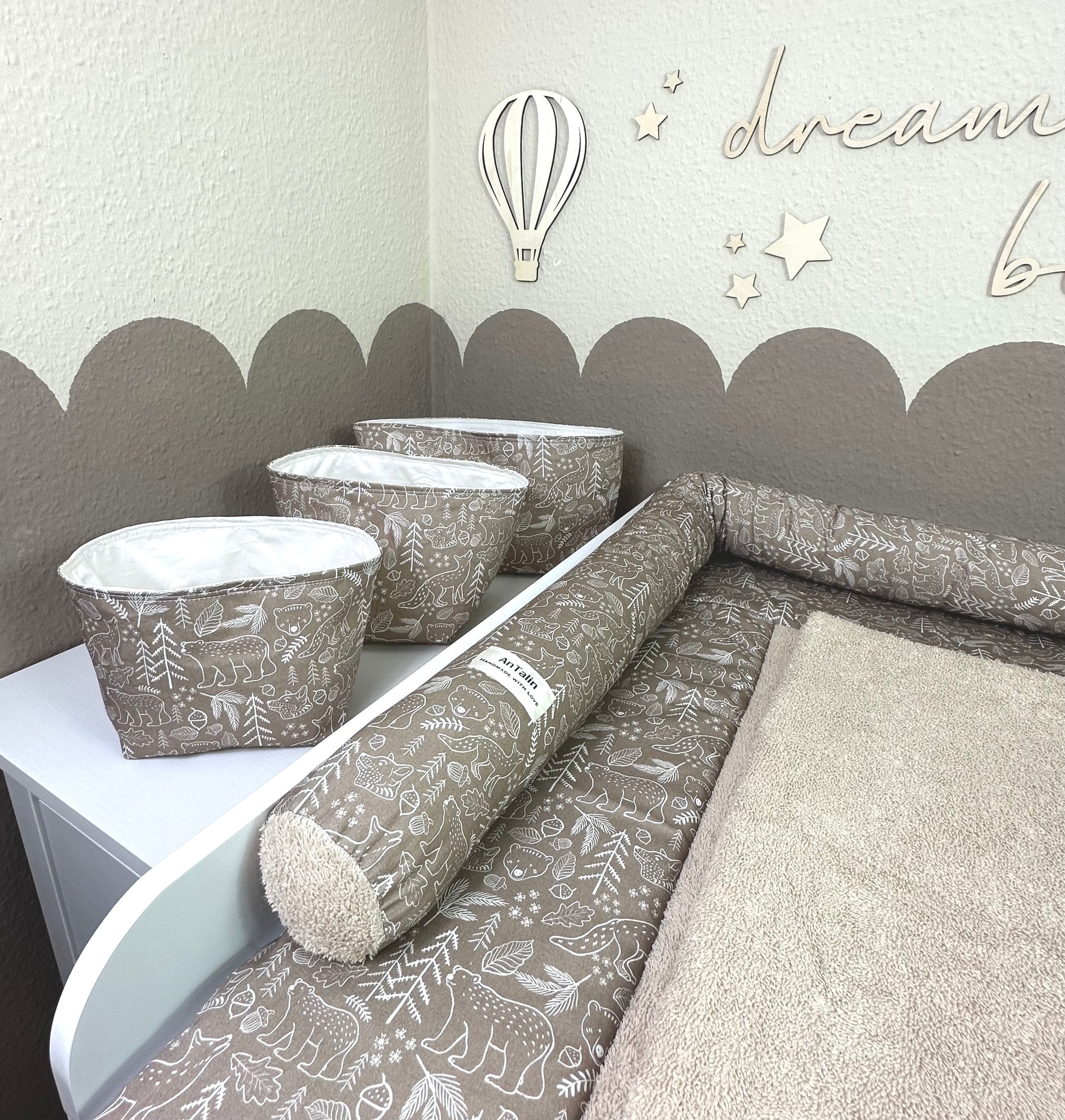 Die Utensilo sind perfekt für Deinen Wickeltisch geeignet. Die unterschiedlichen Größen bieten Platz für Windeln, Feuchtücher, Creme und Co.