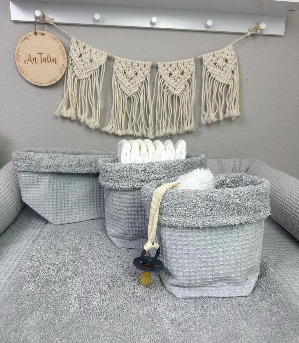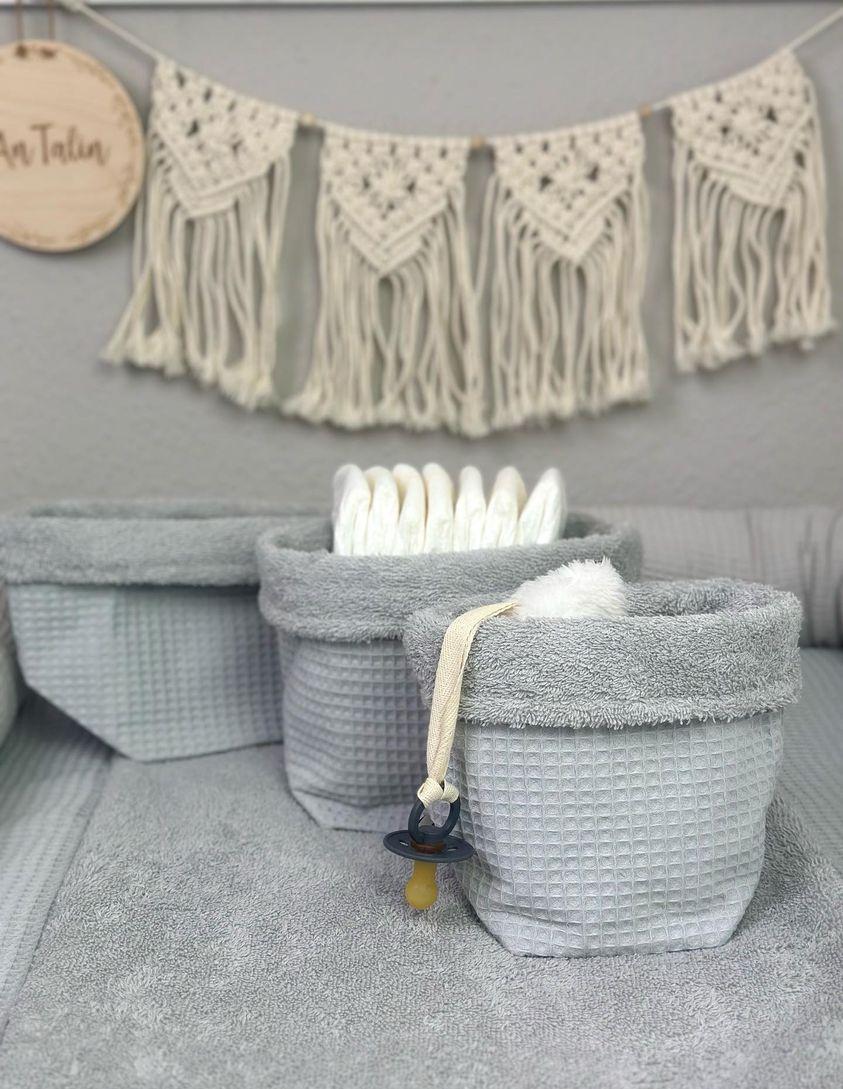Die Utensilo sind perfekt für Deinen Wickeltisch geeignet. Die unterschiedlichen Größen bieten Platz für Windeln, Feuchtücher, Creme und Co.