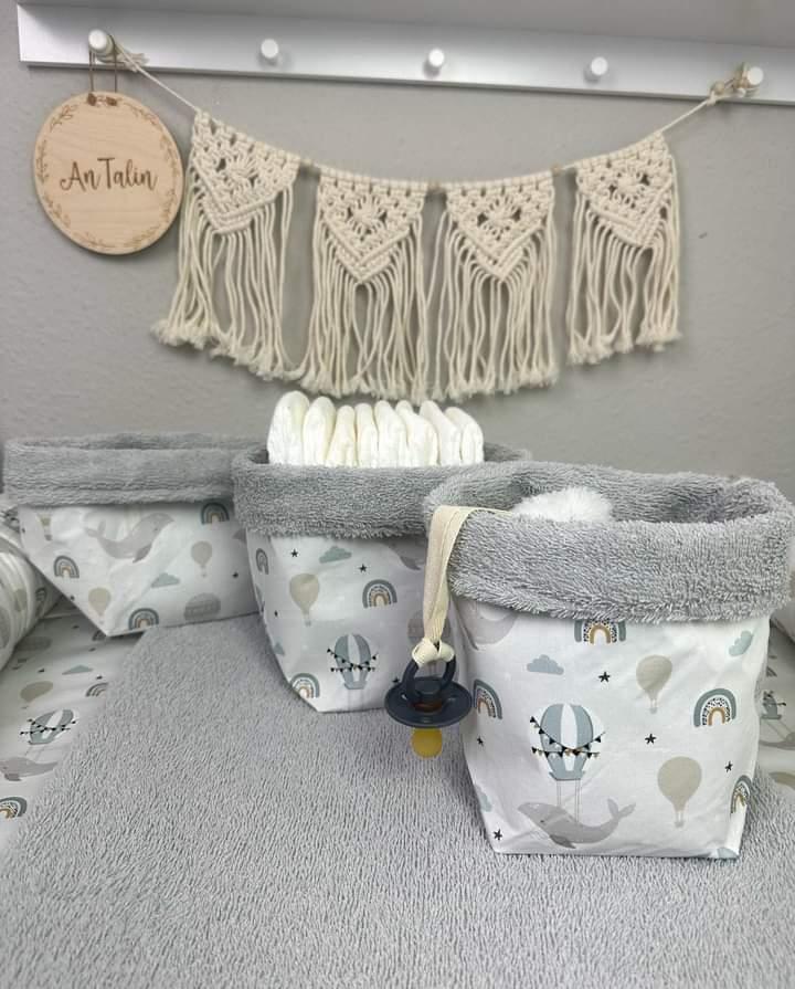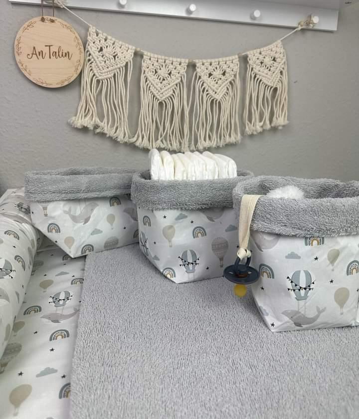 Die Utensilo sind perfekt für Deinen Wickeltisch geeignet. Die unterschiedlichen Größen bieten Platz für Windeln, Feuchtücher, Creme und Co.