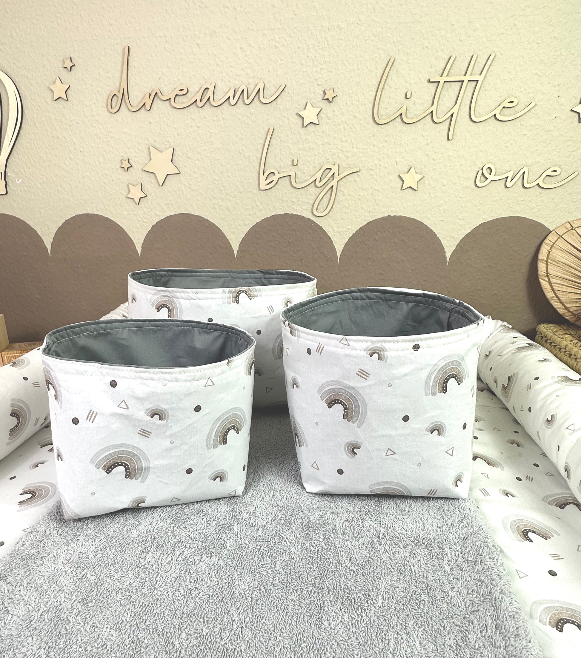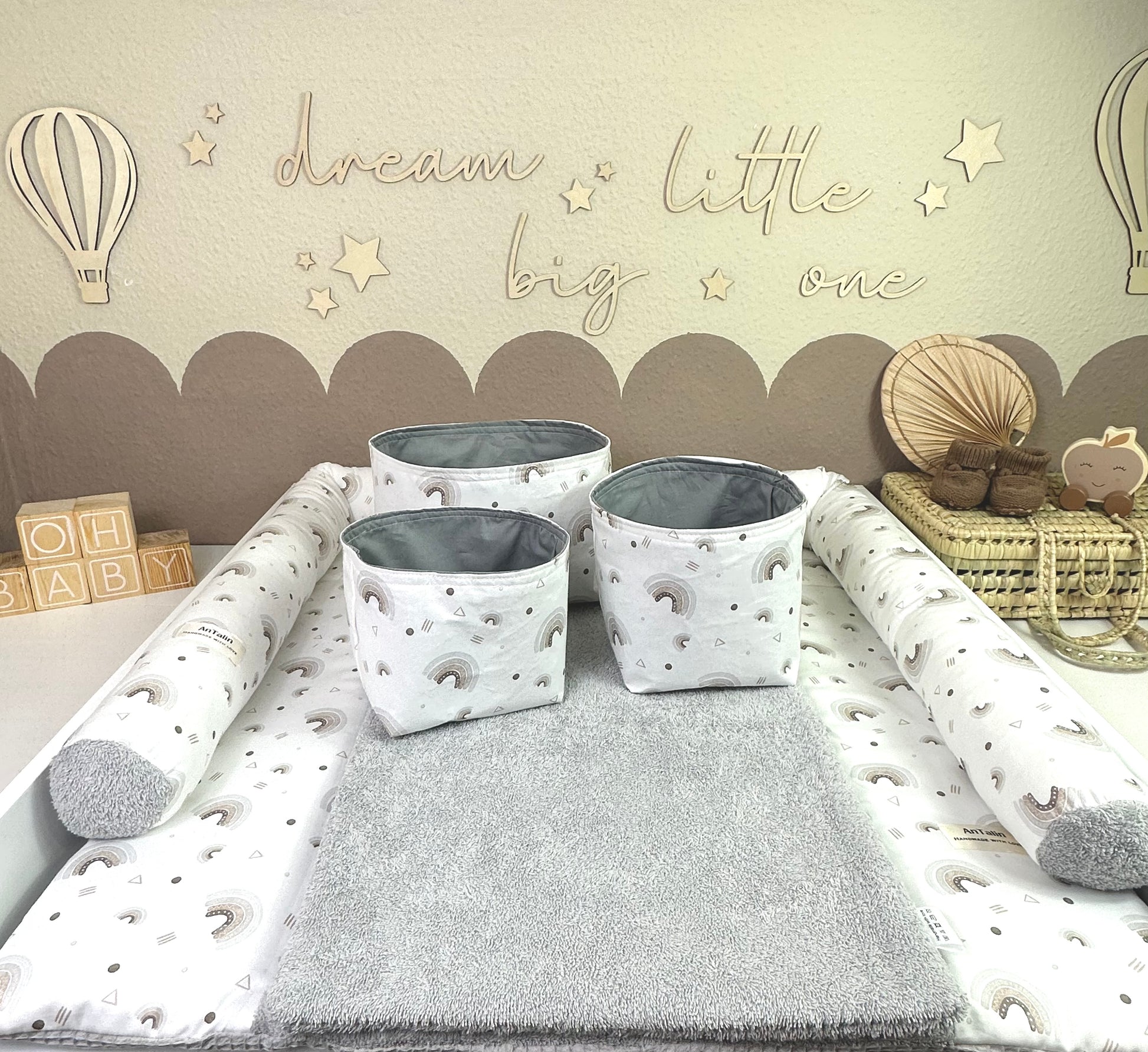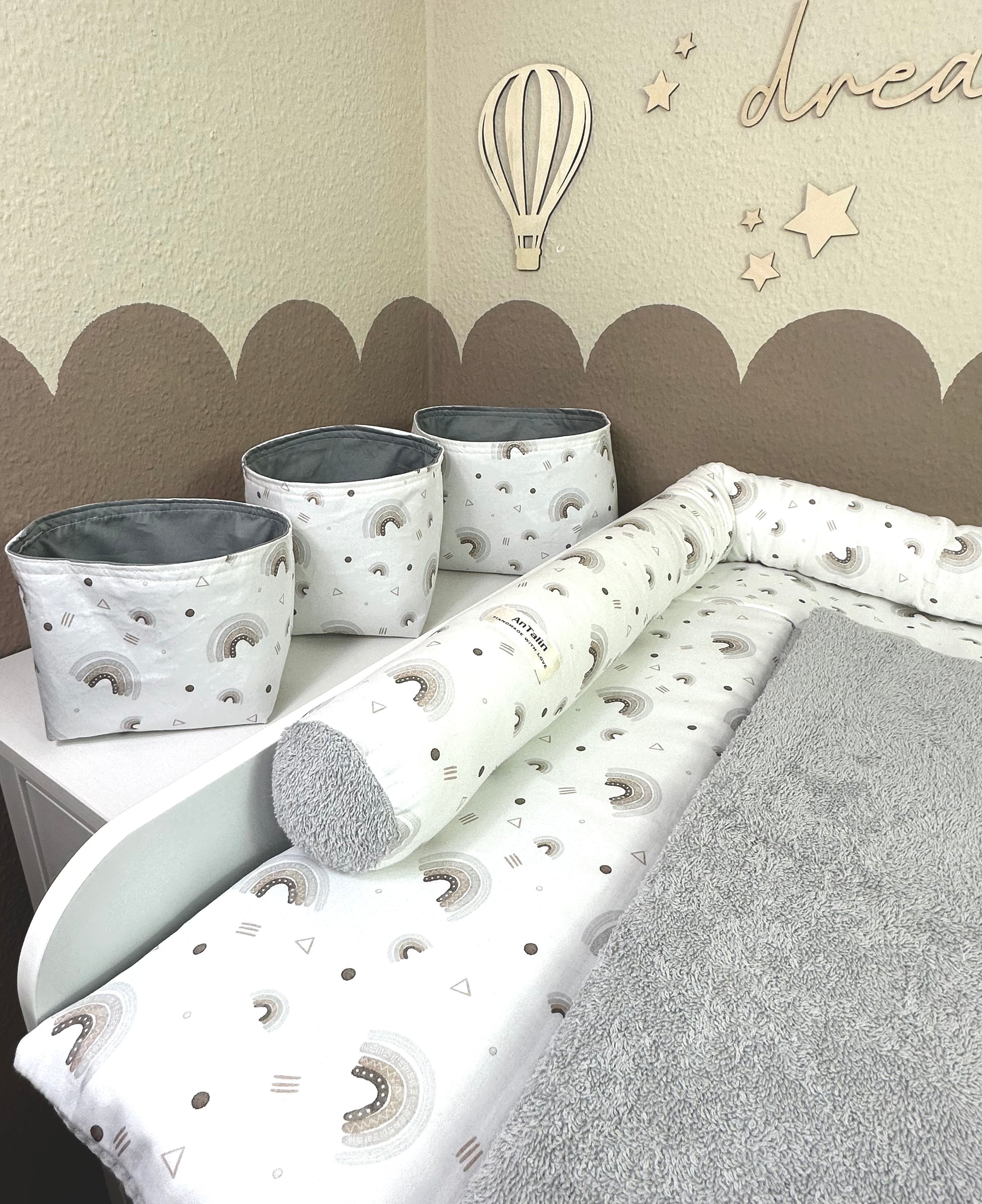 Die Utensilo sind perfekt für Deinen Wickeltisch geeignet. Die unterschiedlichen Größen bieten Platz für Windeln, Feuchtücher, Creme und Co.