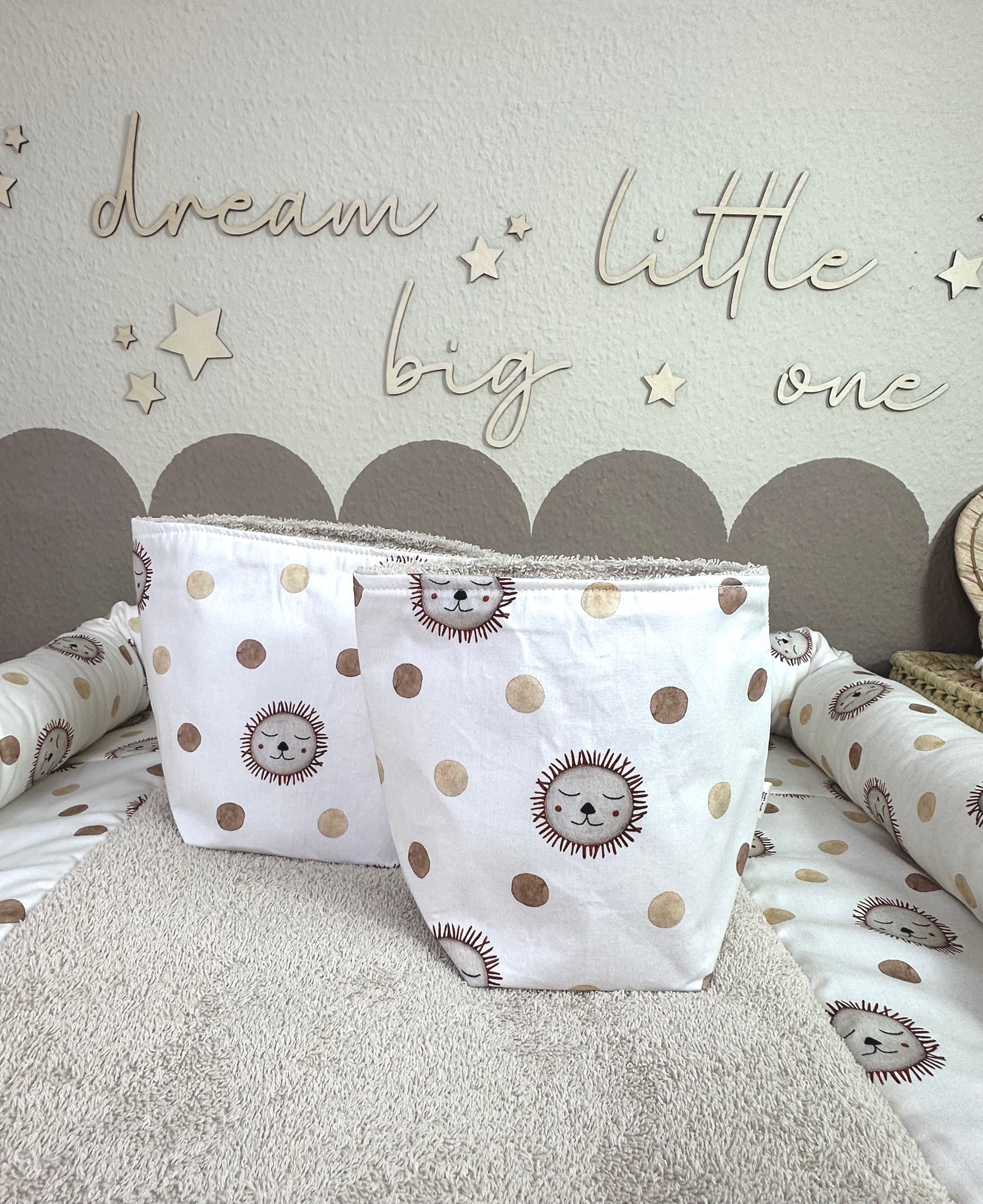 Die Utensilo sind perfekt für Deinen Wickeltisch geeignet. Die unterschiedlichen Größen bieten Platz für Windeln, Feuchtücher, Creme und Co.