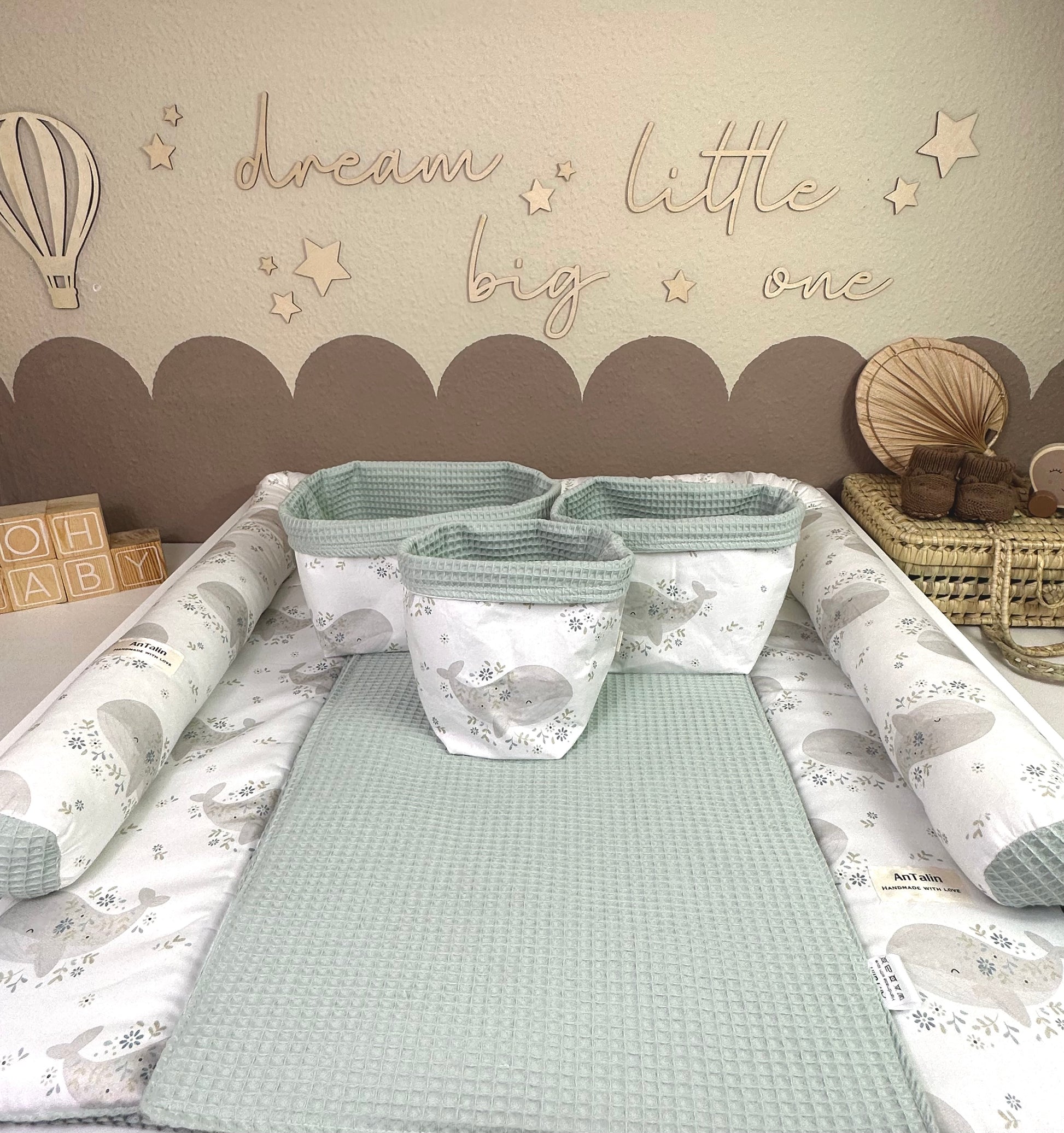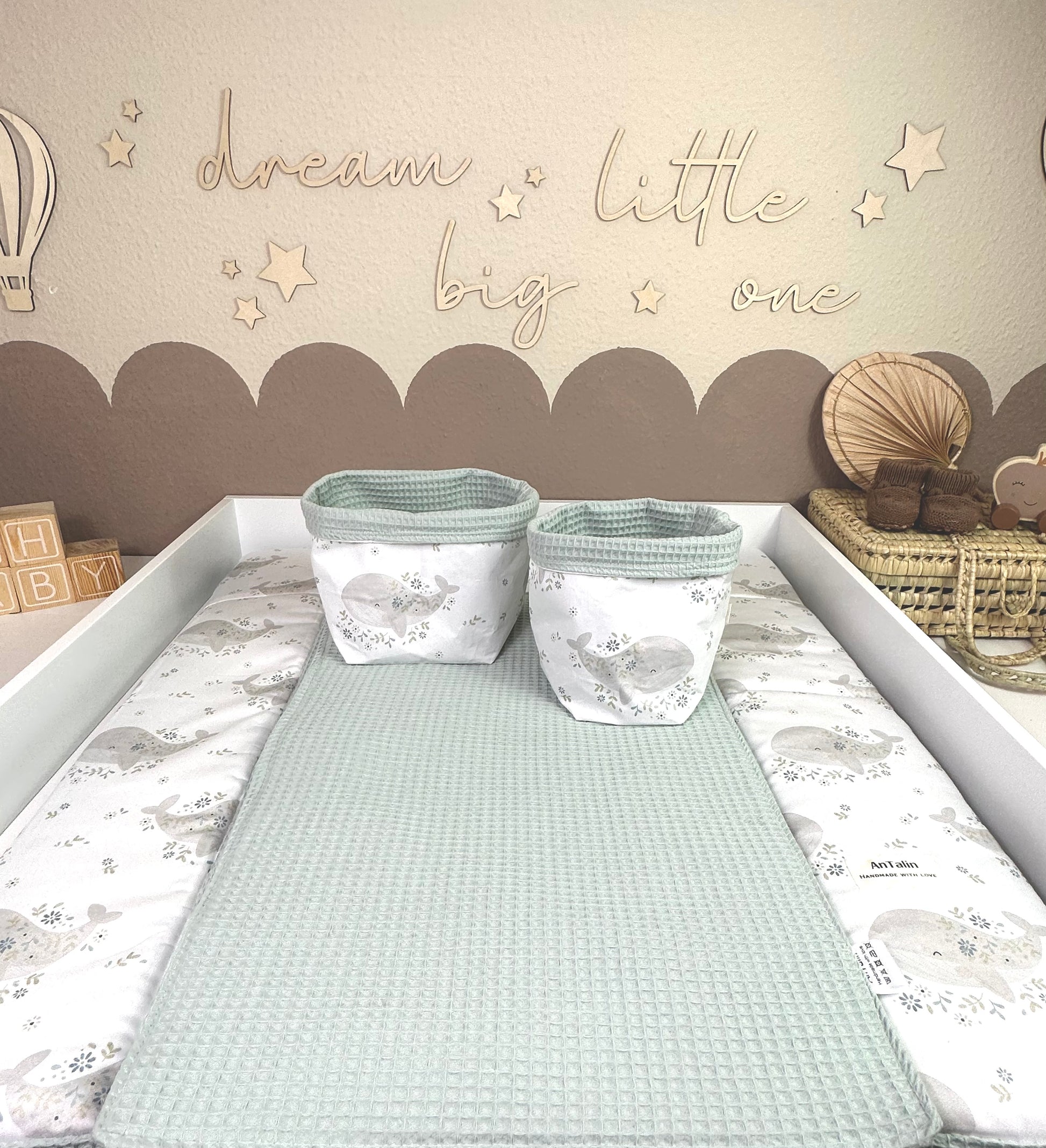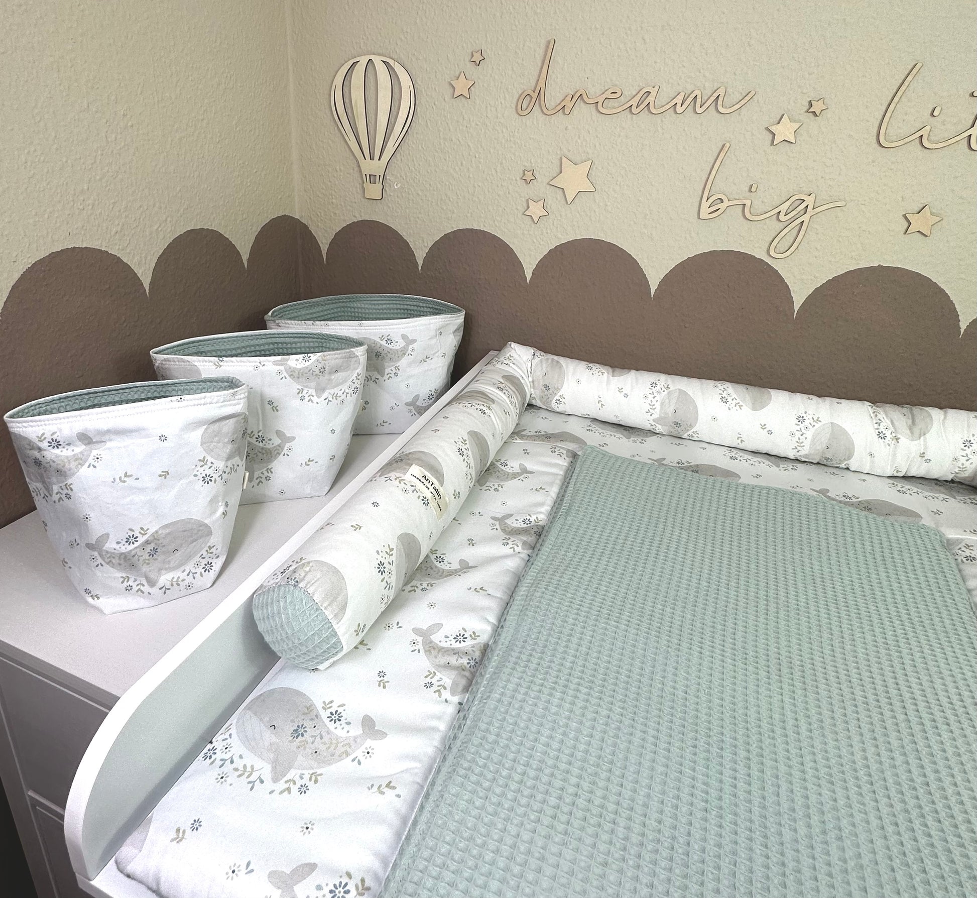 Die Utensilo sind perfekt für Deinen Wickeltisch geeignet. Die unterschiedlichen Größen bieten Platz für Windeln, Feuchtücher, Creme und Co.