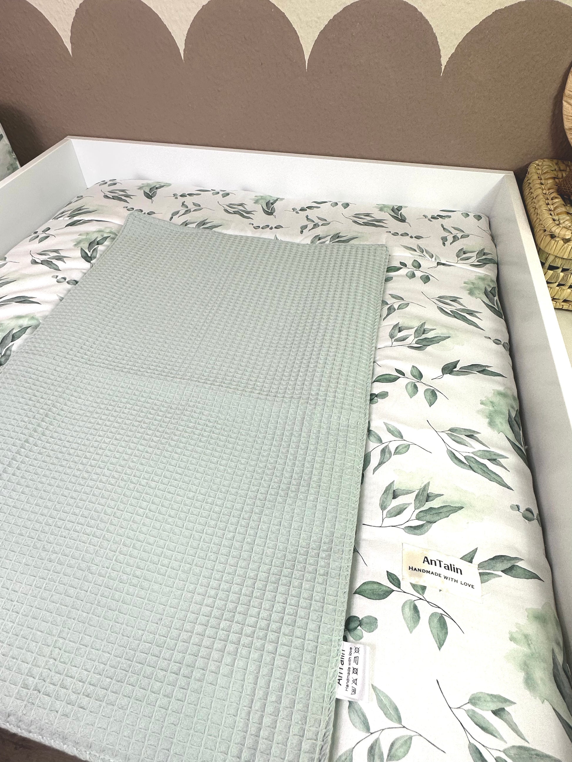 Wickelauflage Eukalyptus, Waffelpique mintgrün