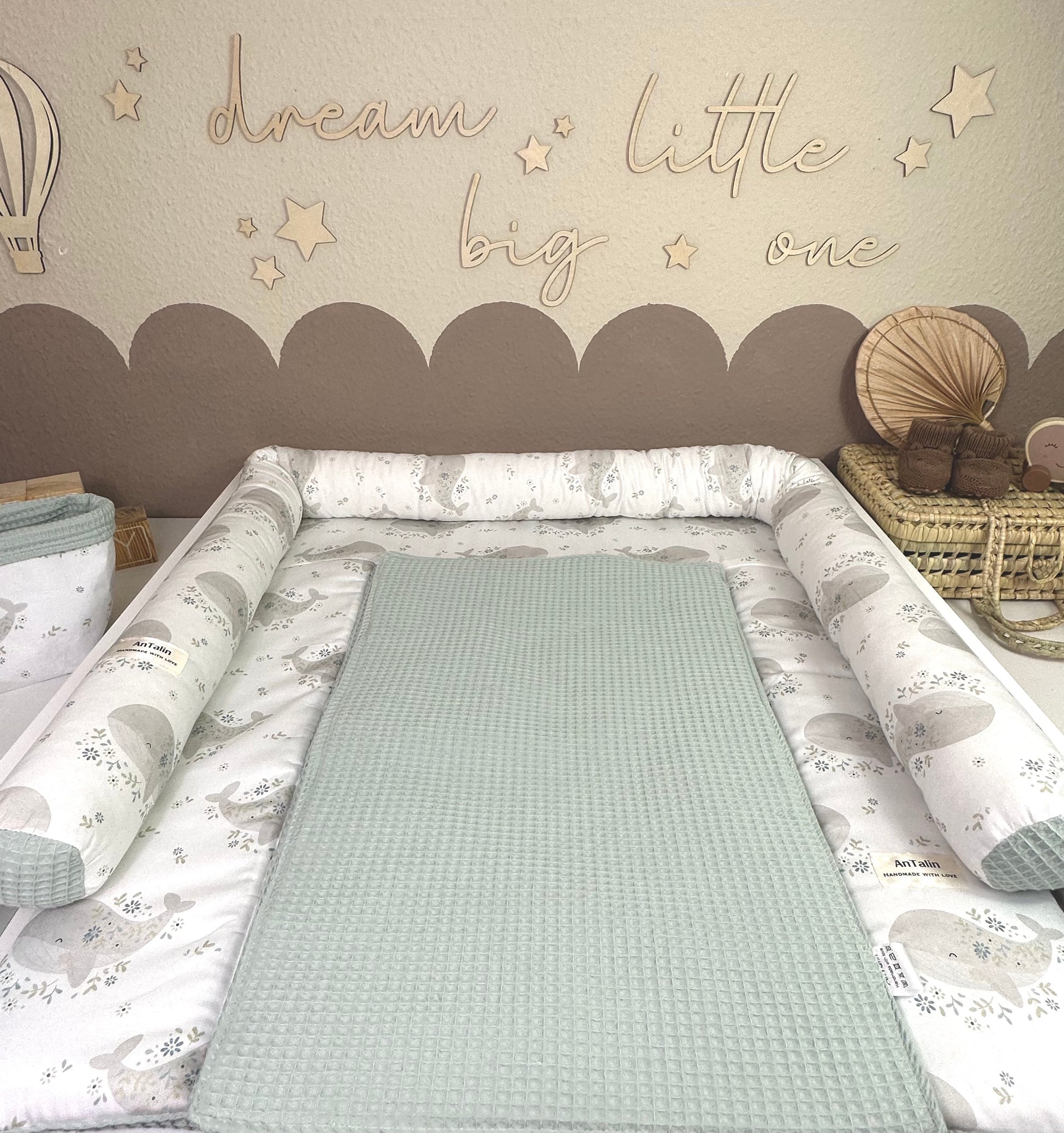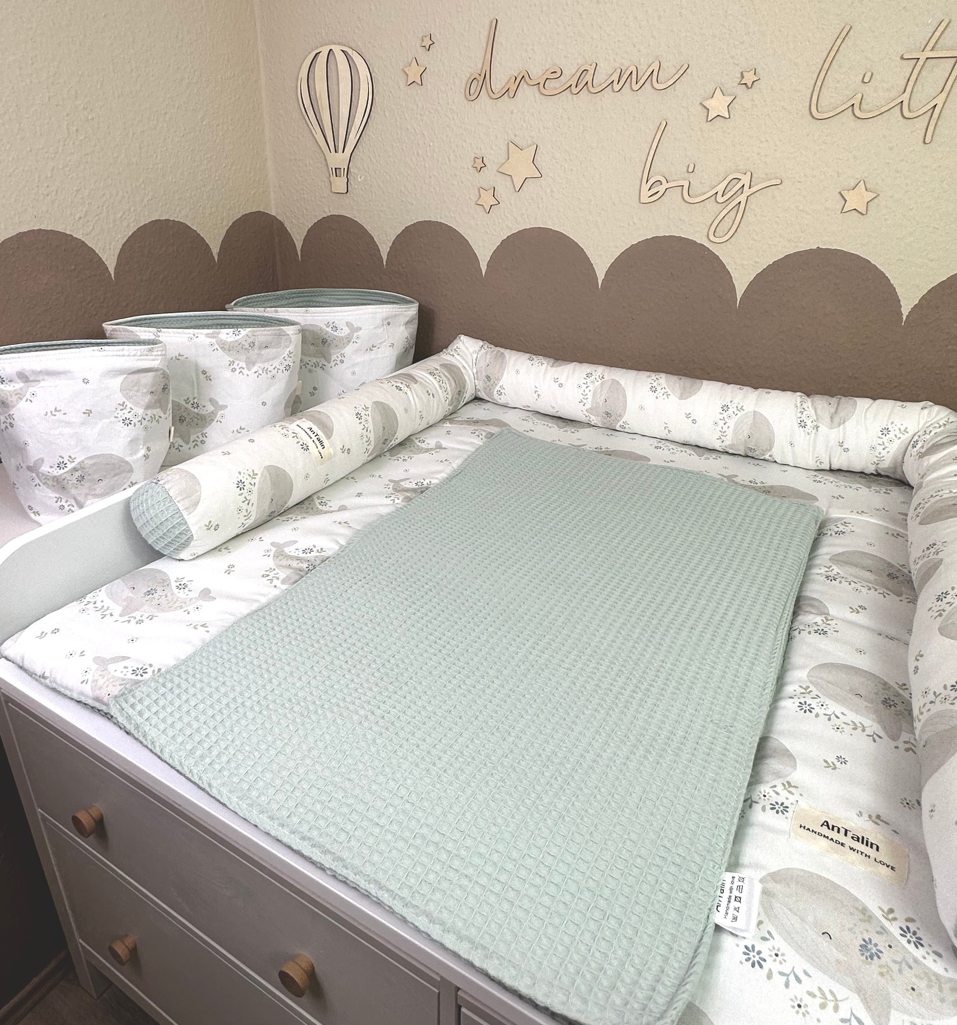 Wickelauflage kleiner Wal Waffelpique mintgrün