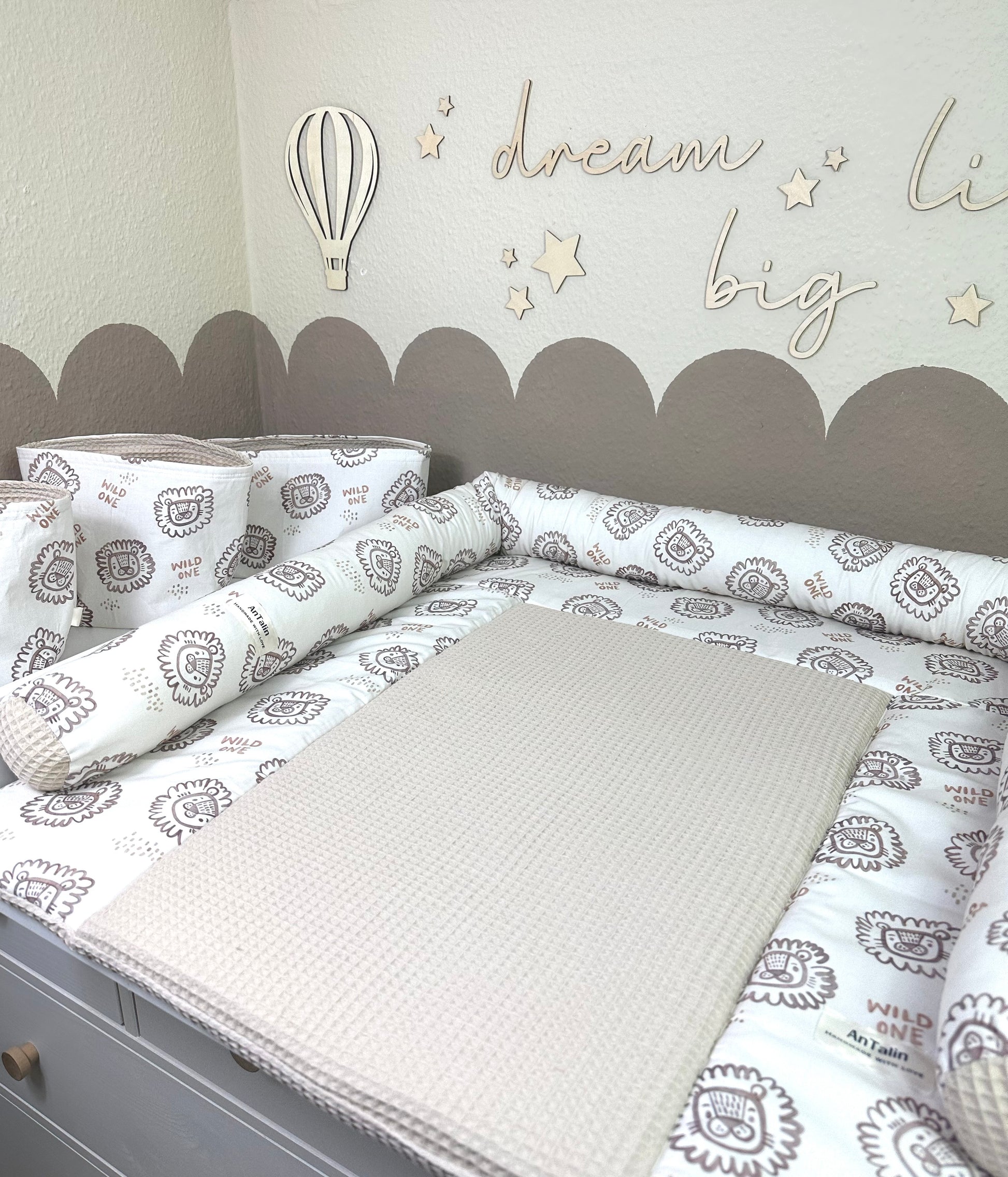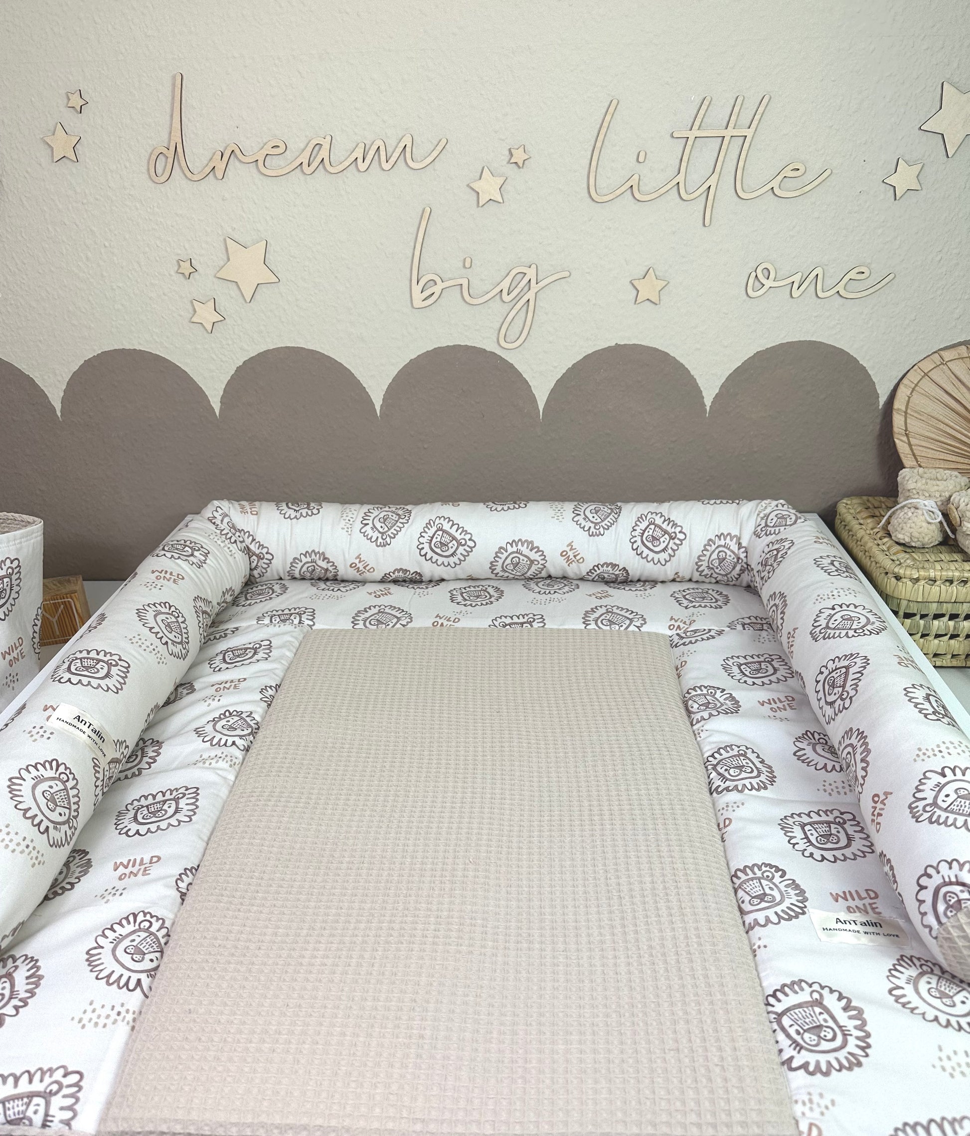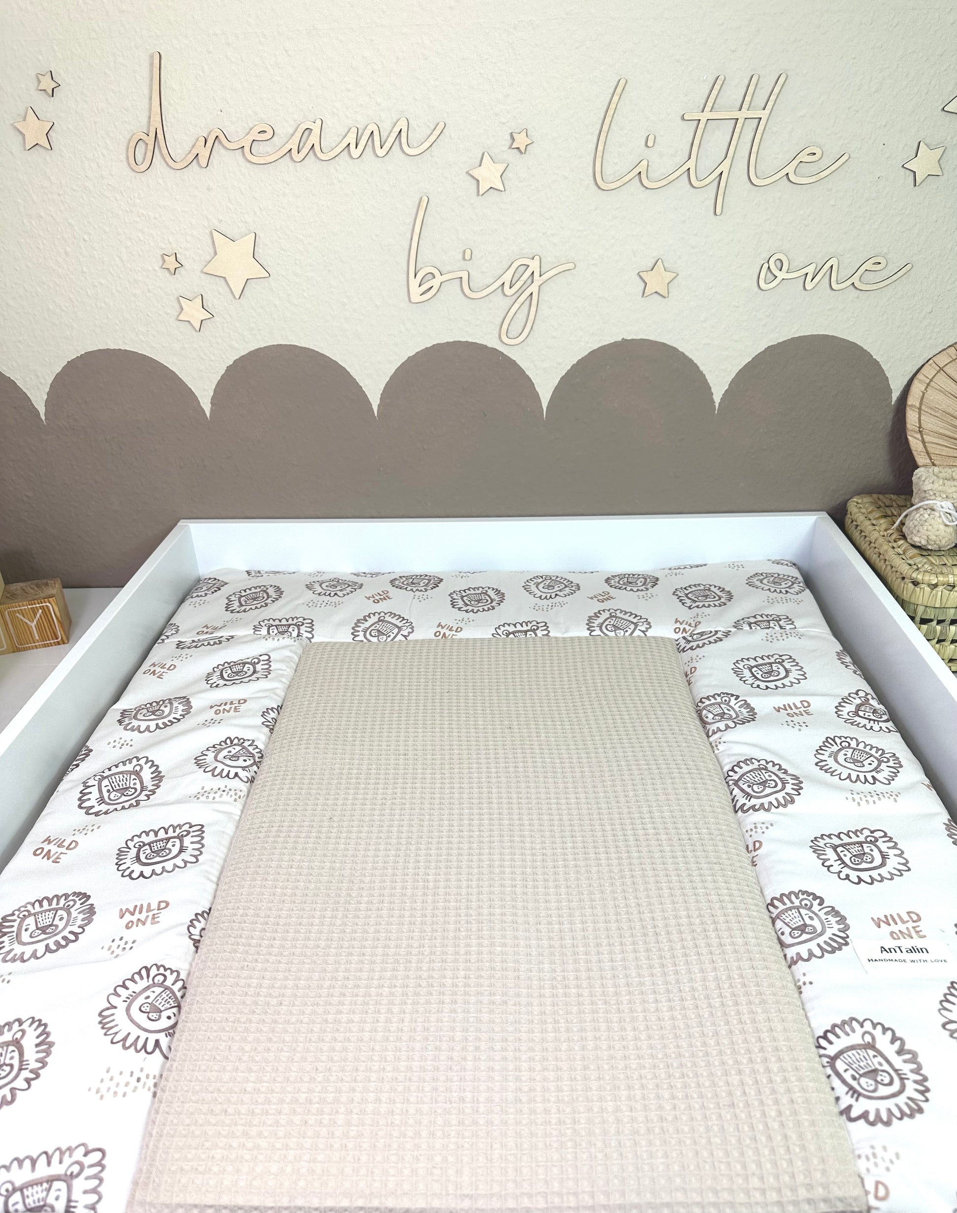 Wickelauflage Lion, Waffelpique hell beige