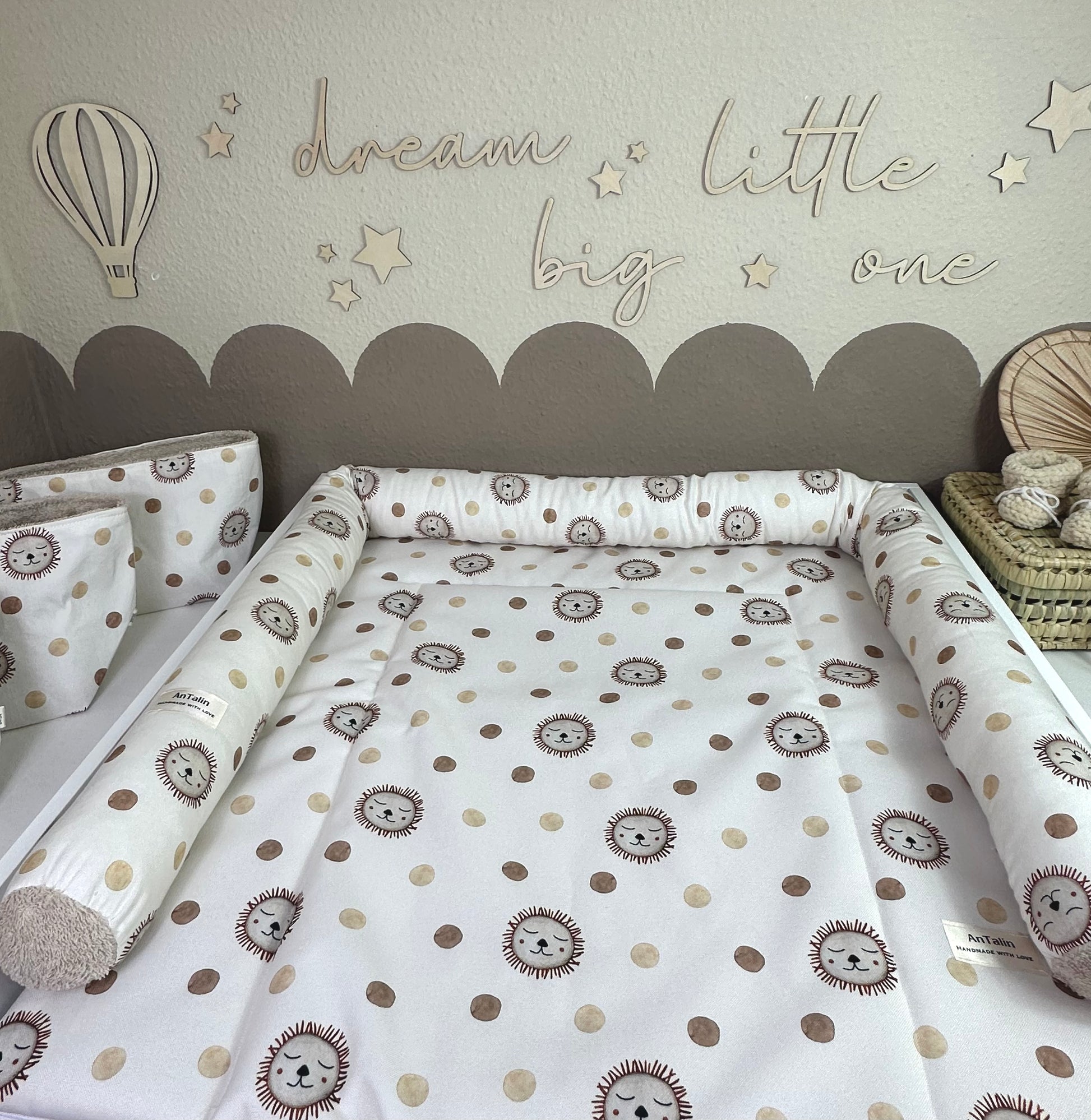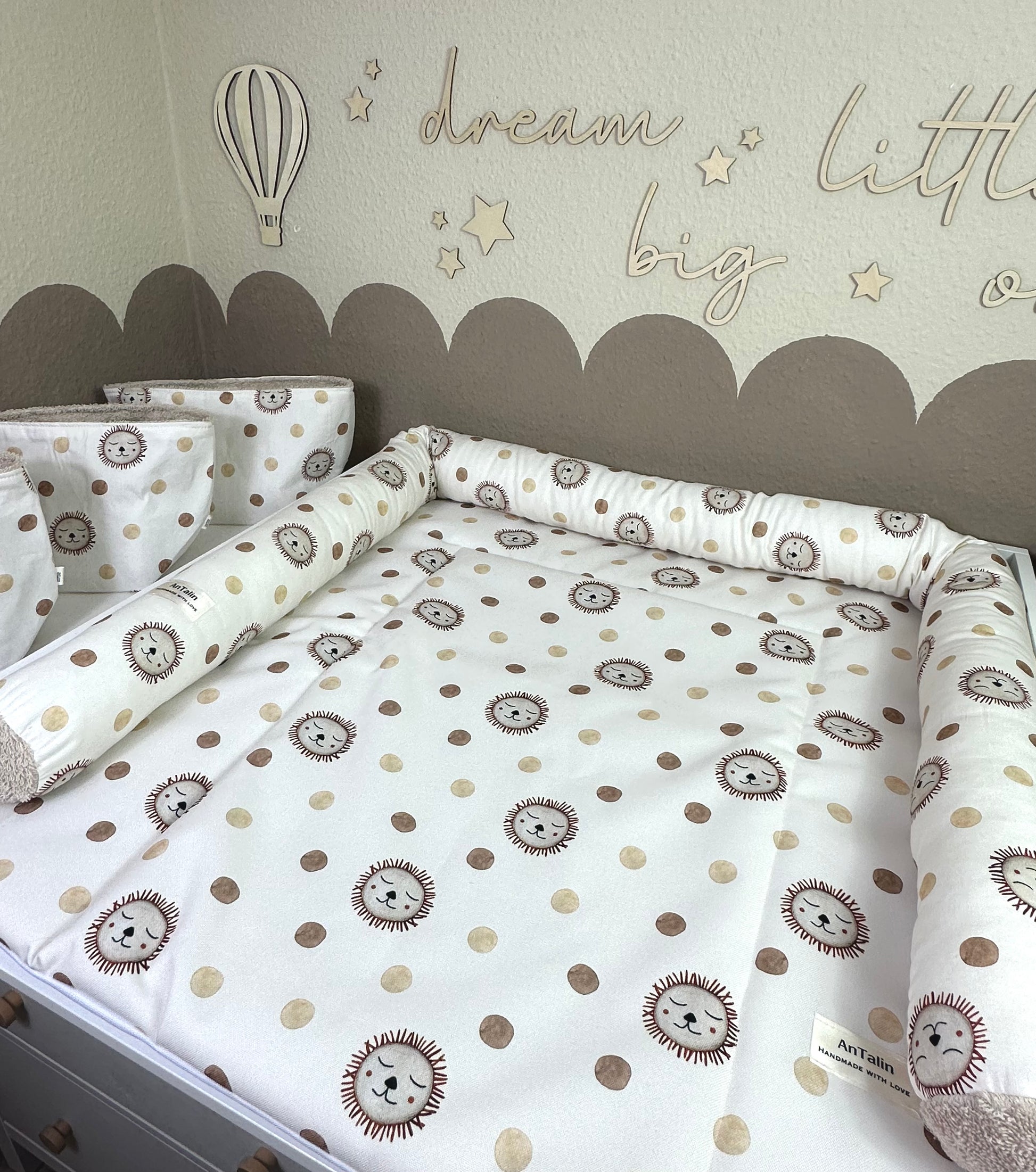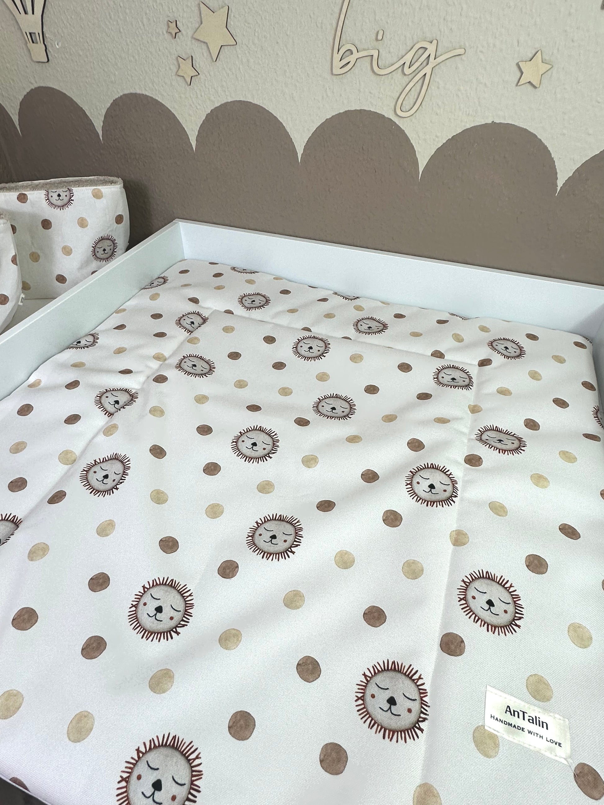 Die Wickelauflagen sind mit einem ca 4 cm dicken Volumenflies gefüttert. Das Mittelteil ist für einen besseren Halt abgesteppt.