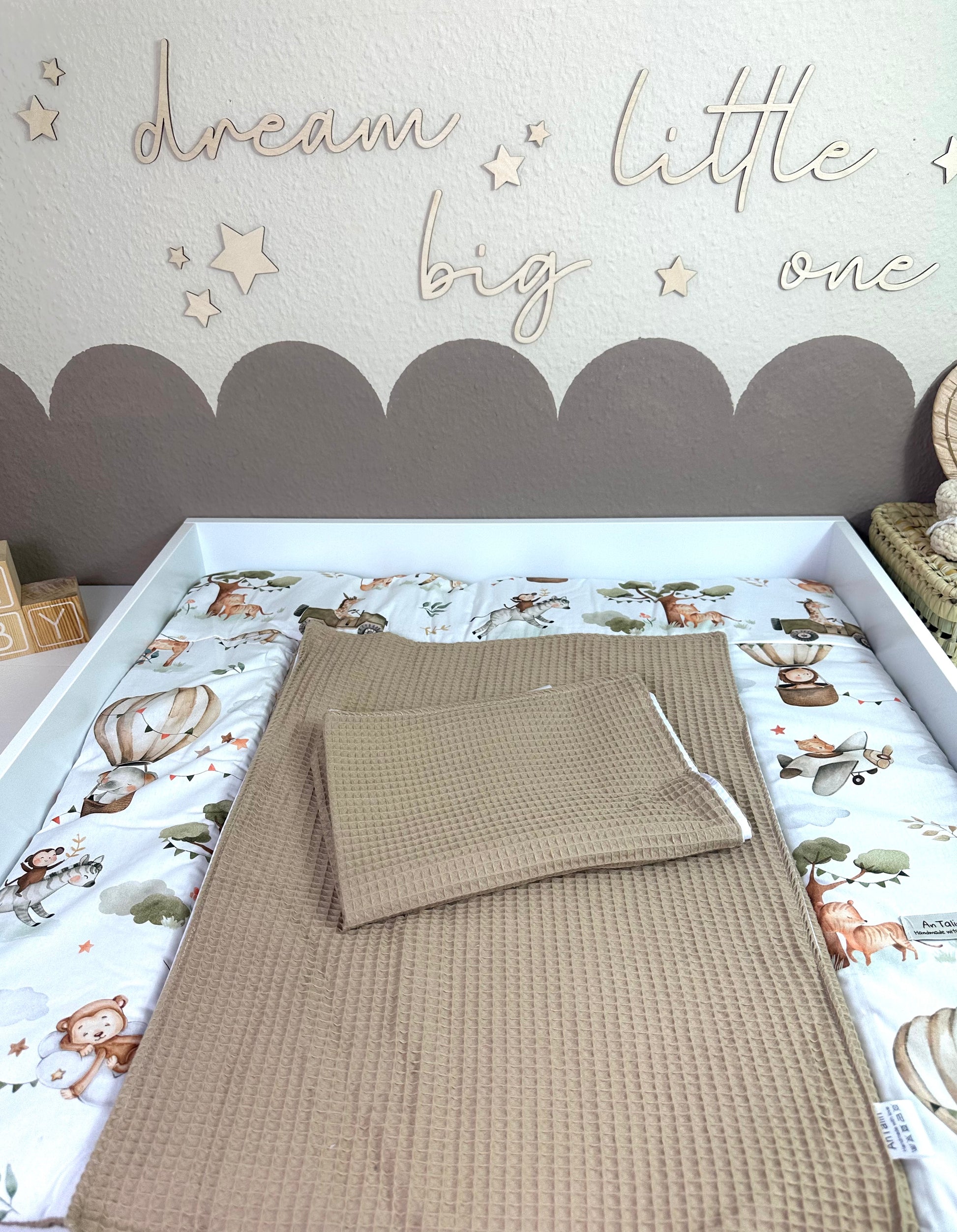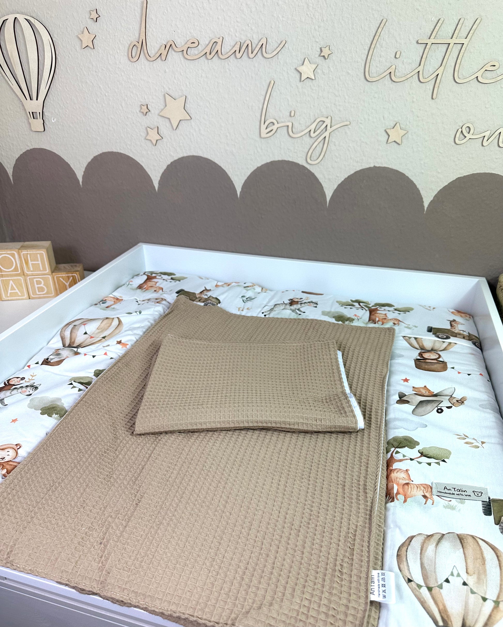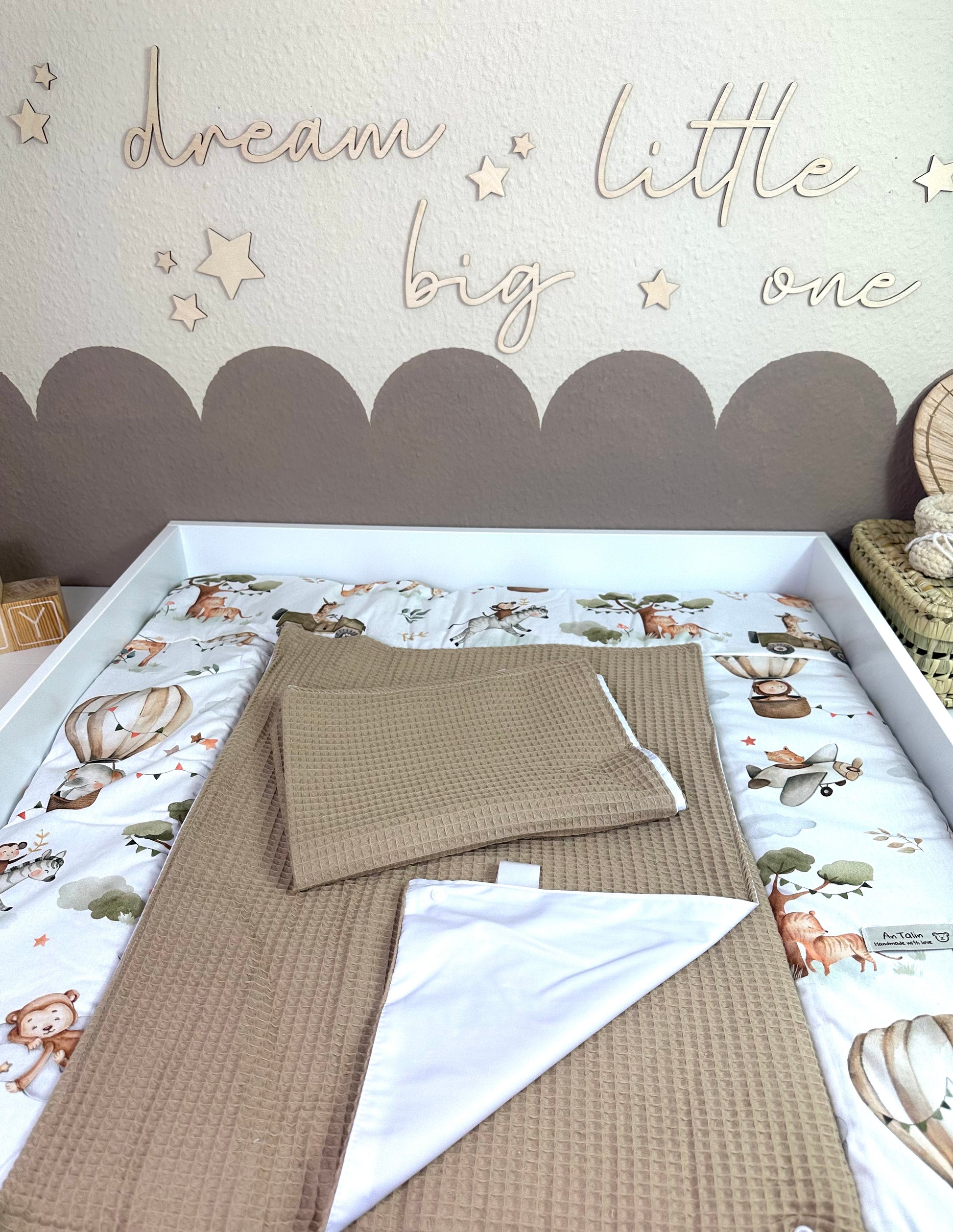 Wickelauflagen Set 3tlg. Dschungelgetummel, Waffelpique dunkles beige