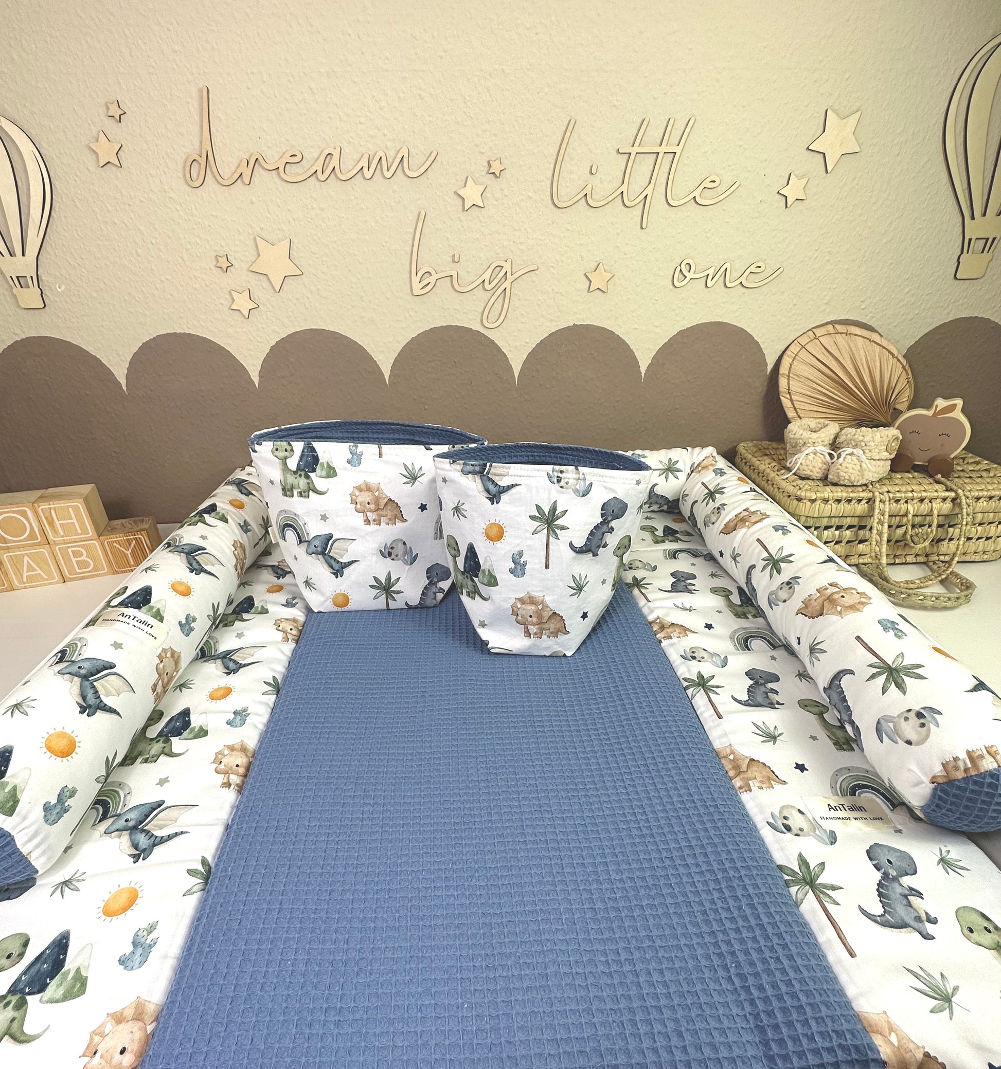 Wickelauflagen Set 5tlg. Kleiner Dino waffelpique jeansblau