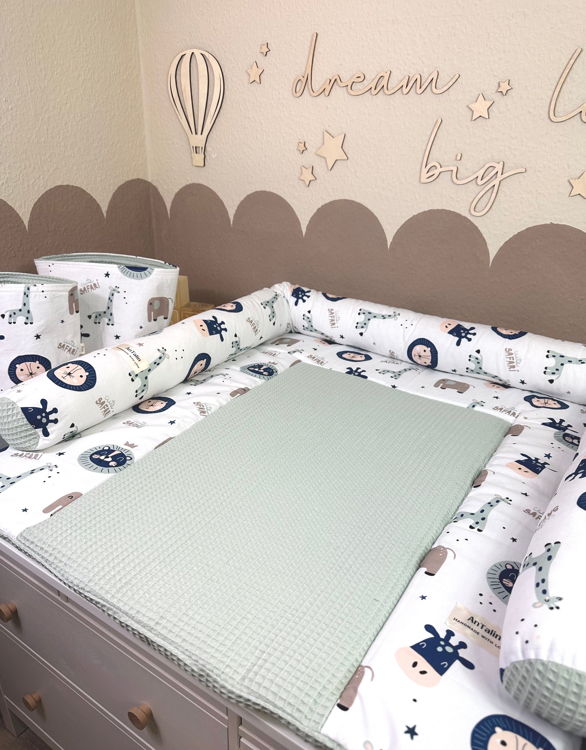 Wickelauflagen Set 5tlg. Small Wildlife, Waffelpique mintgrün