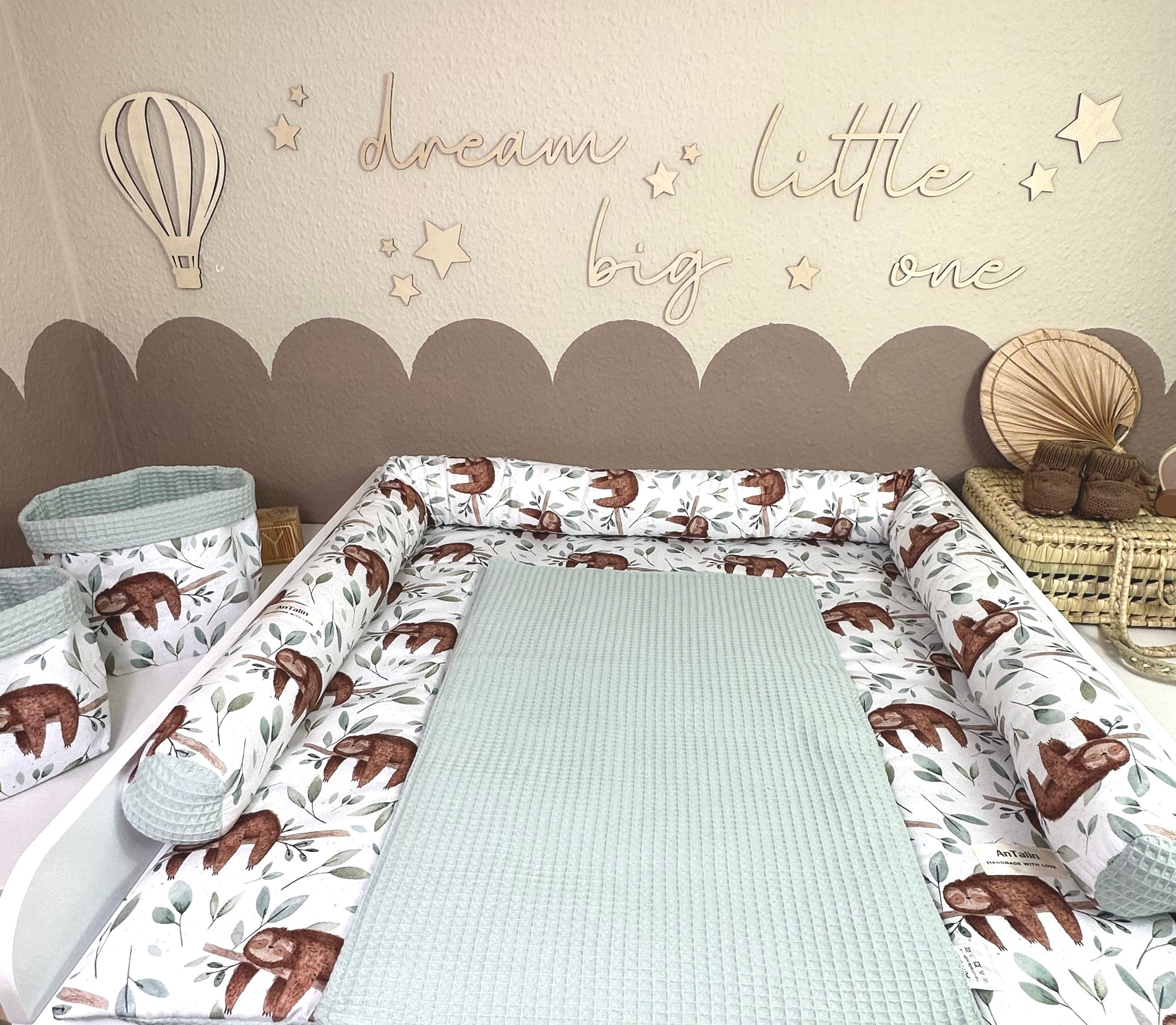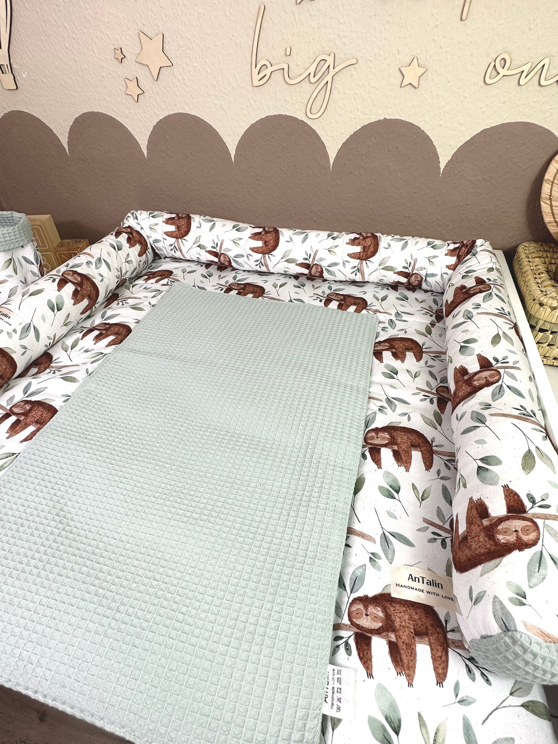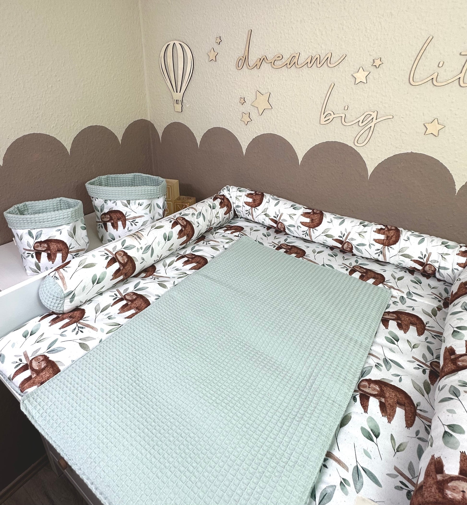 Wickelauflagen Set 5tlg. Sloth Waffelpique mintgrün