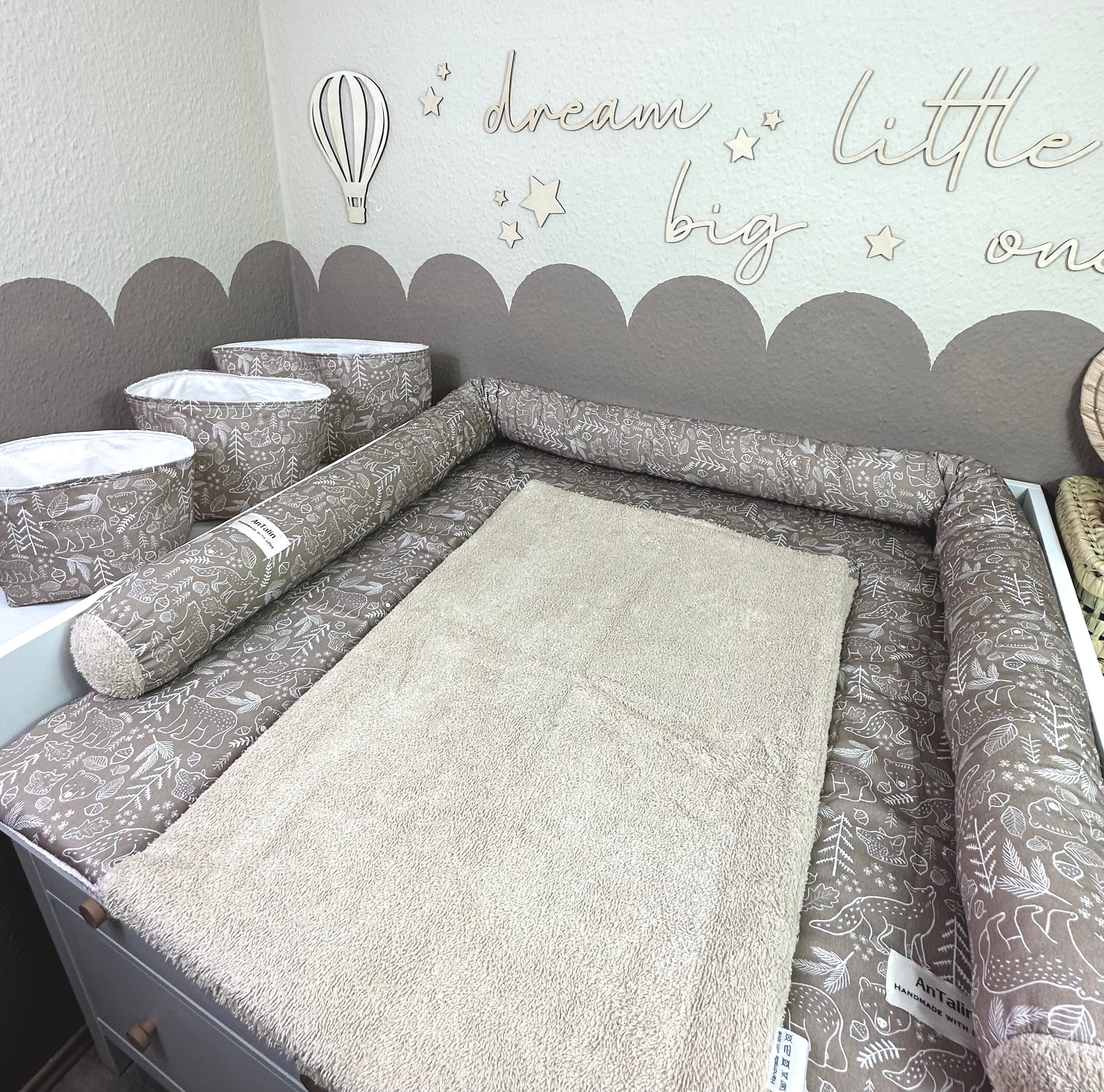 Wickelauflage, Utensilo Körbchen in S,M&L sowie das Dekokissen lang, welches das Gesamtbild nochmal verschönert und zudem auch noch Sicherheit bietet.