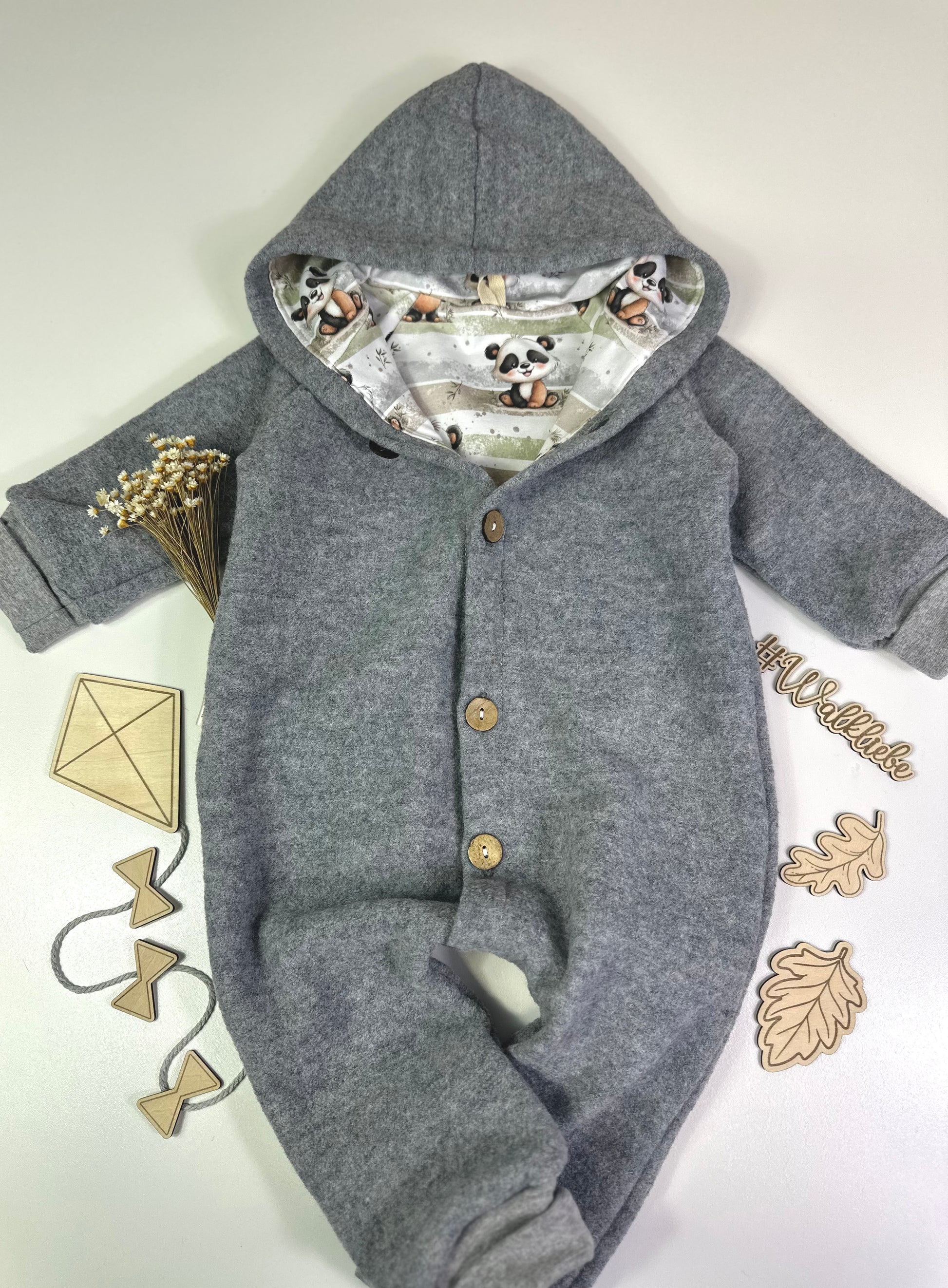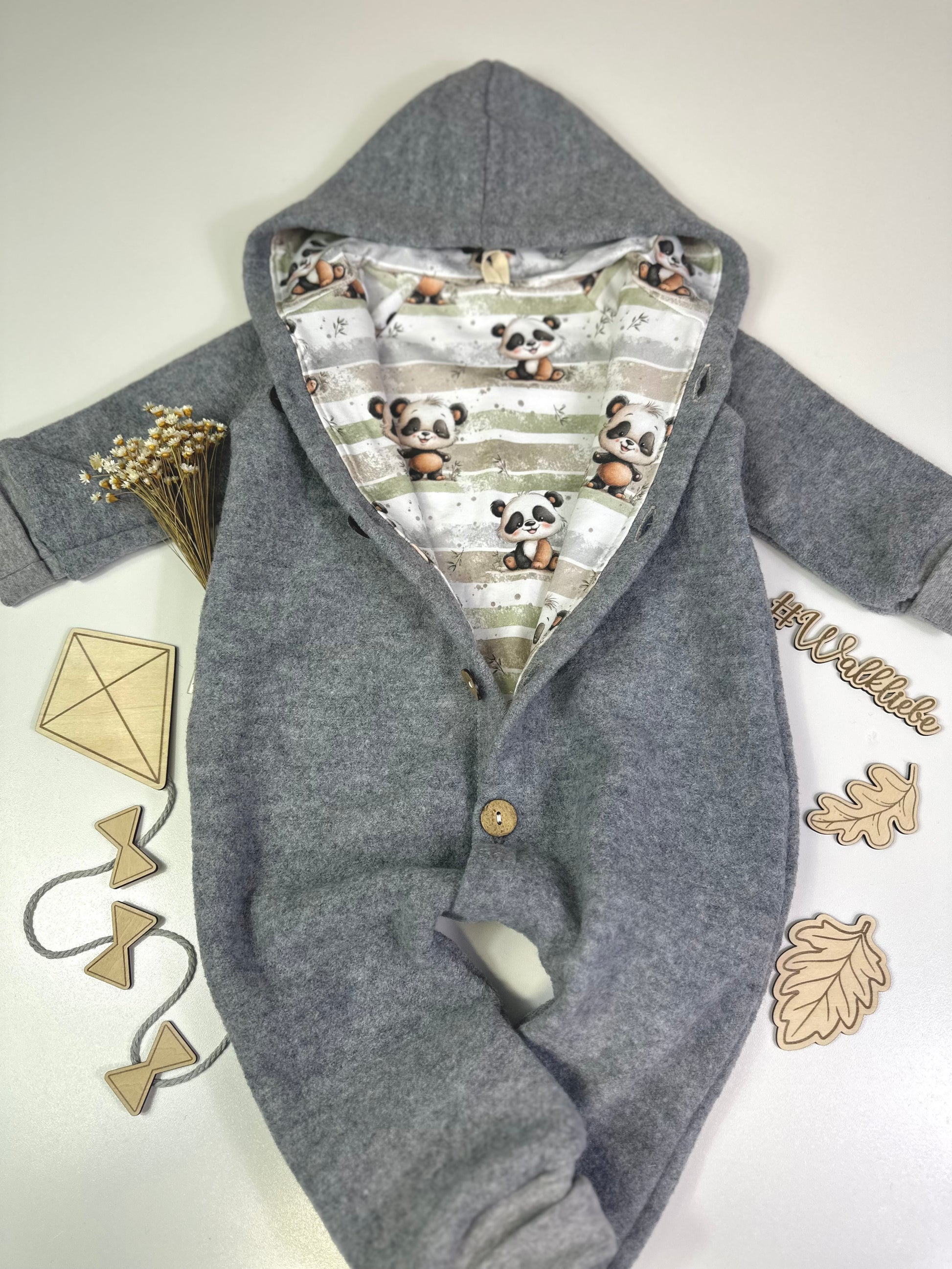 Unser liebevoll handgefertigte Baby Overall aus Walk ist der perfekte Begleiter für kühle Herbst- und Wintertage. Der weiche Walk sorgt für wohlige Wärme, während das Innenfutter mit aüssen Panda für ein Hauch von Eleganz und Komfort sorgt.
