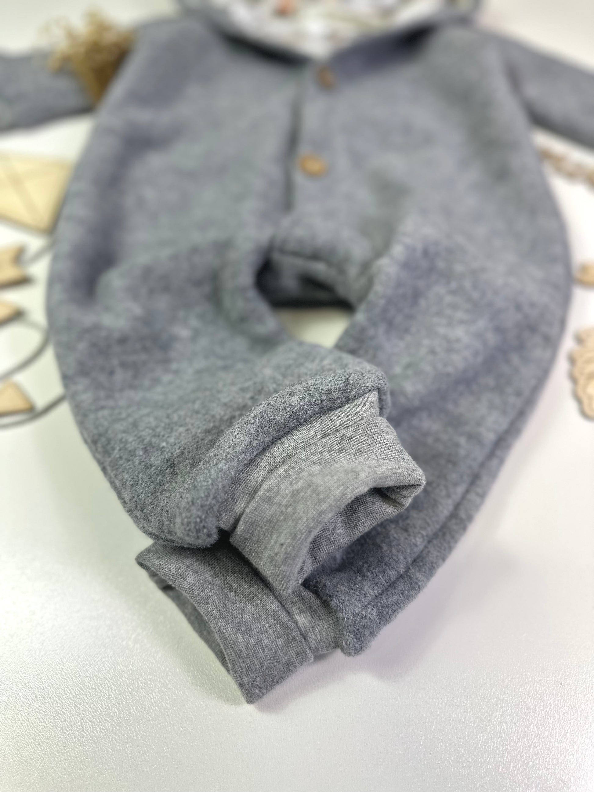 - Extras: Bequeme Kaputze, Mitwachsbündchen an Arme und Beine