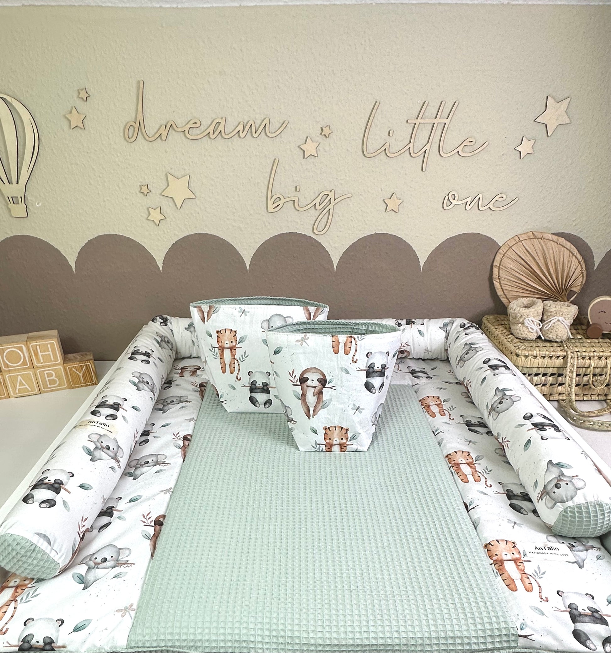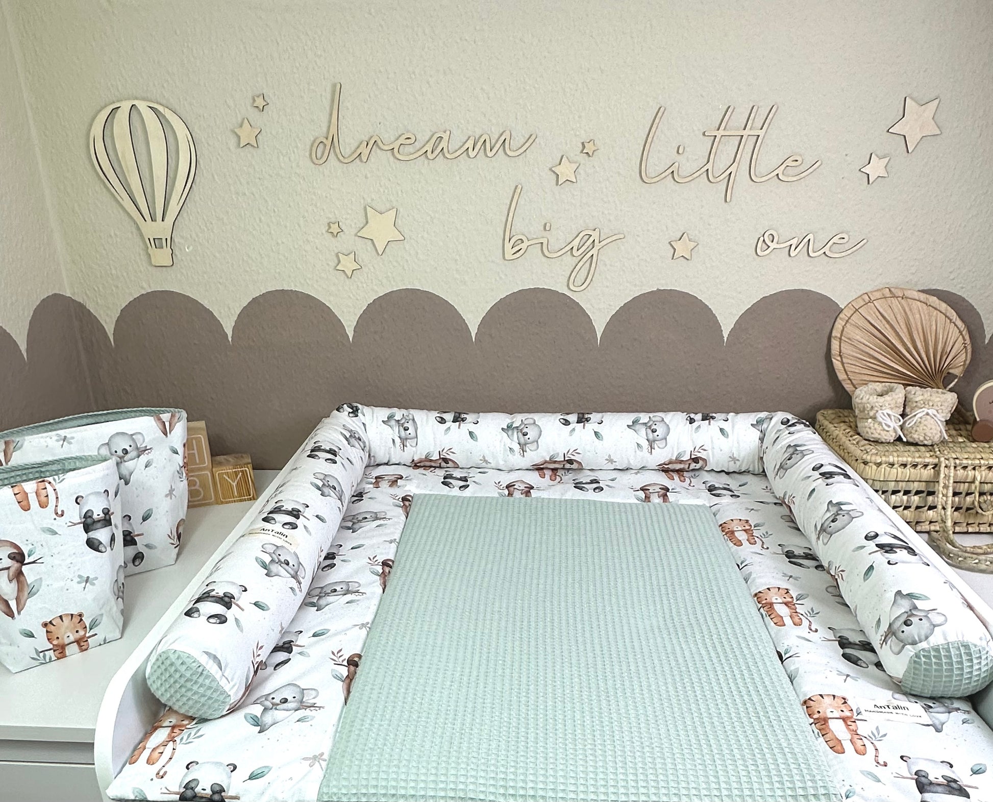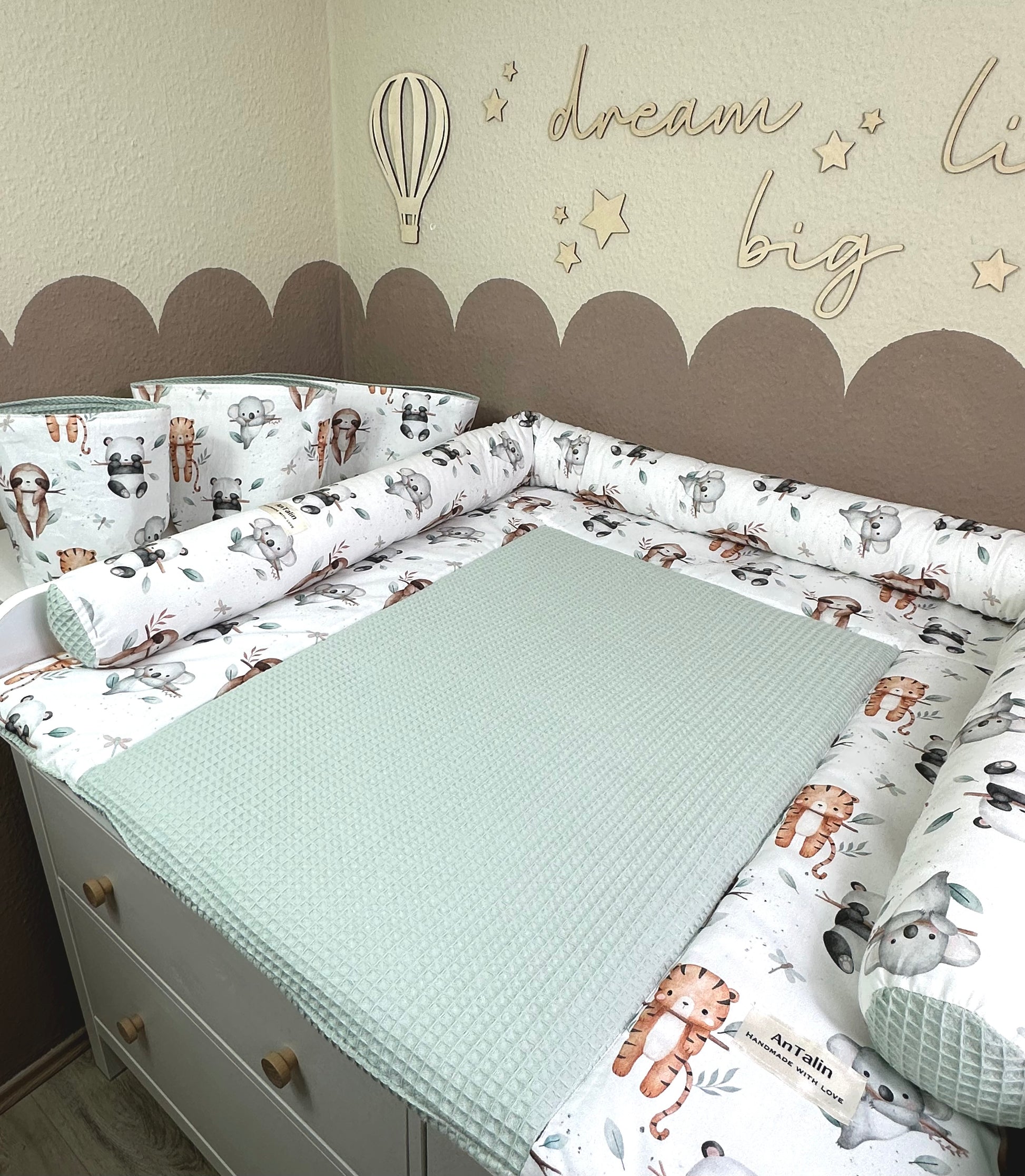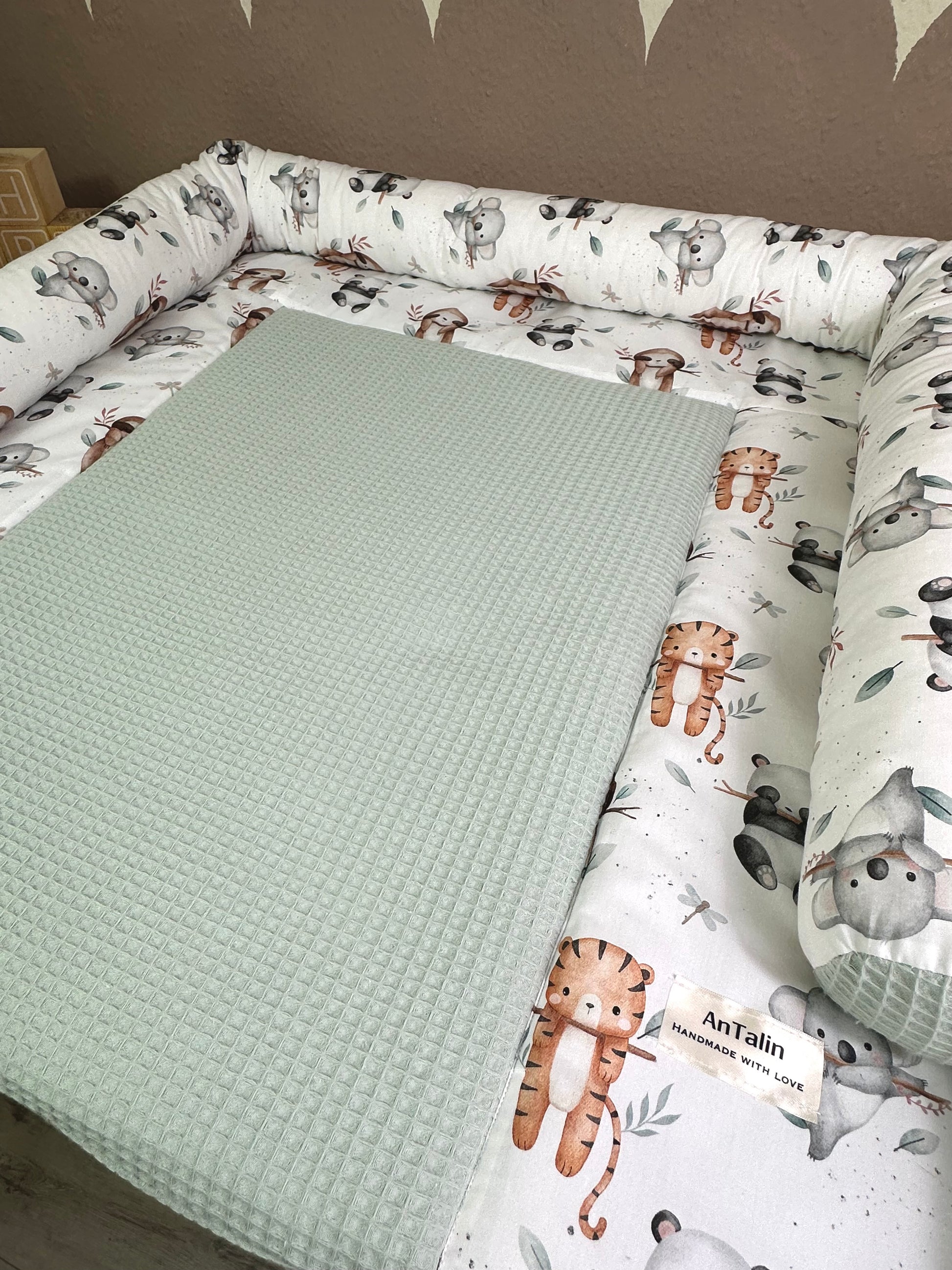 Wickelauflage animals Friends, waffelpique Mitgrün