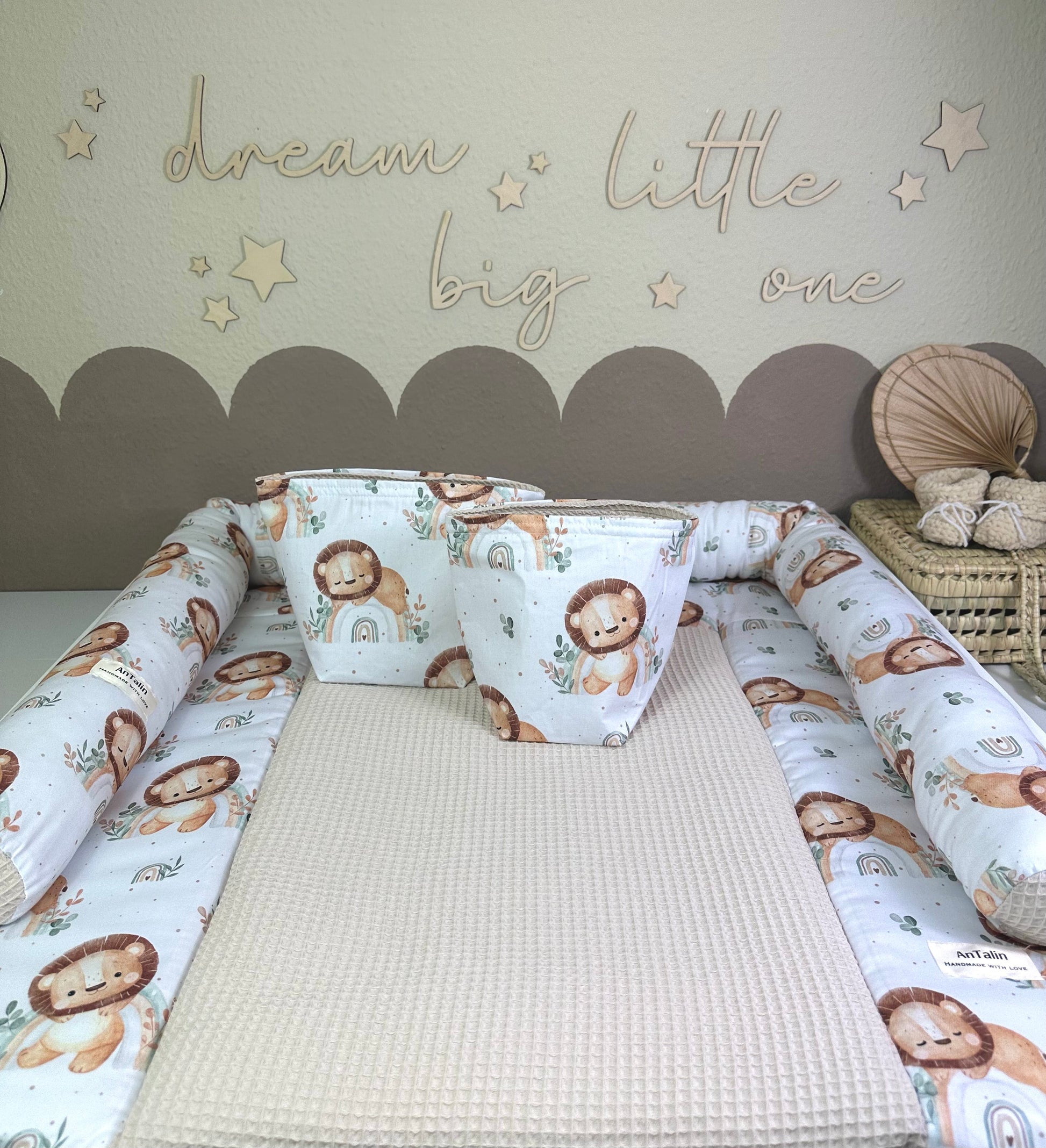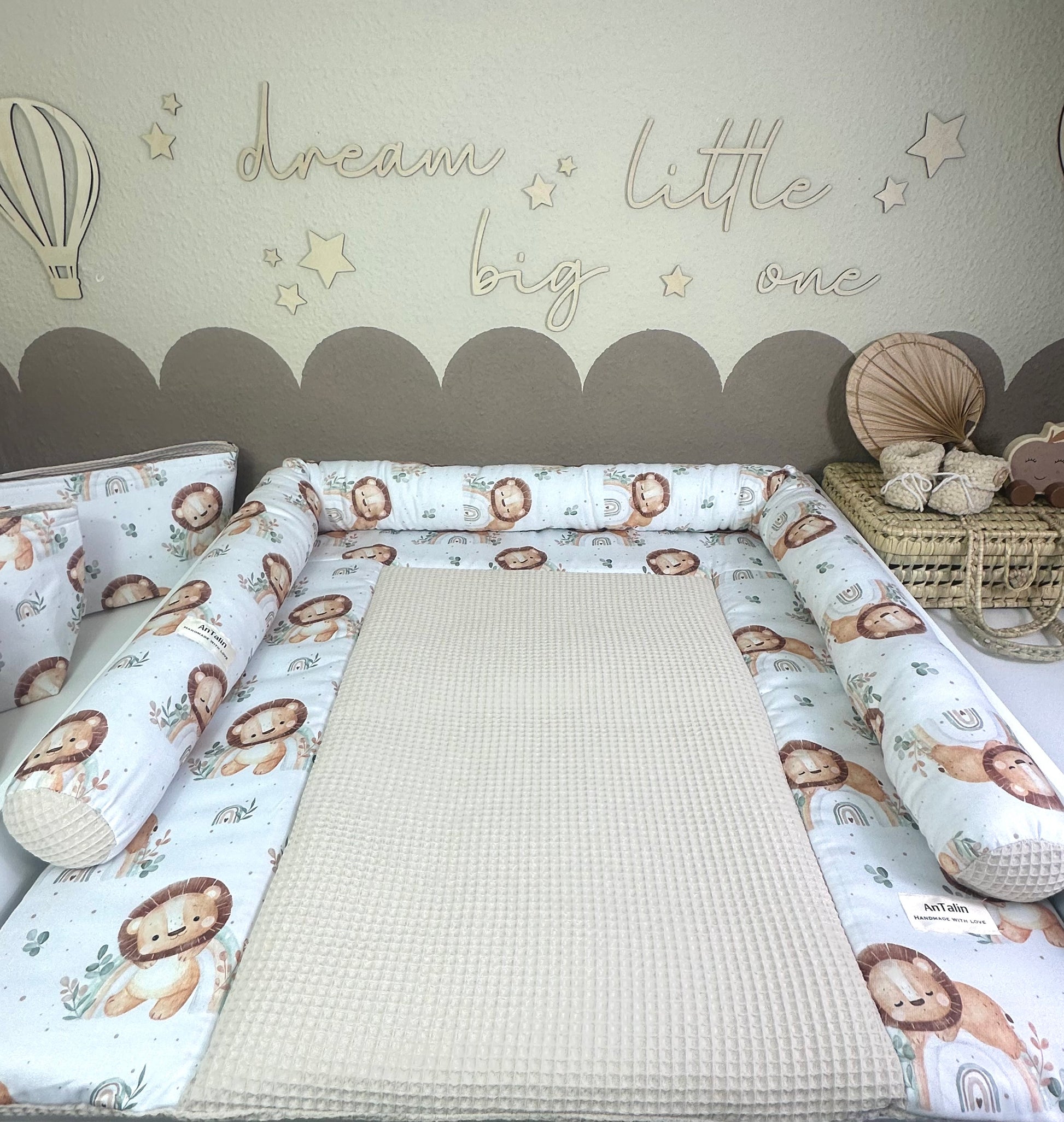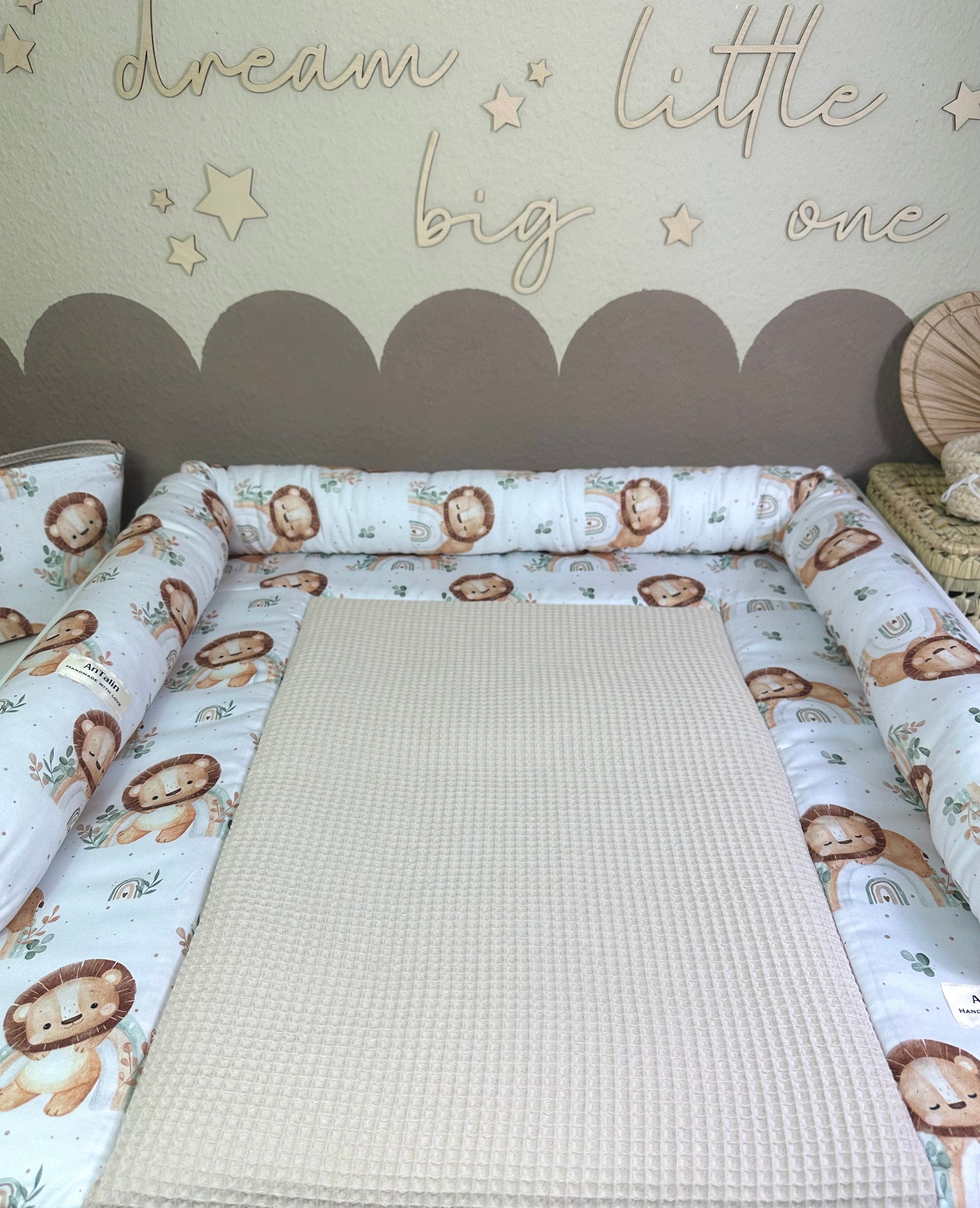 Wickelauflage Lion Rainbow, waffelpique hell beige