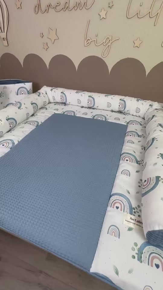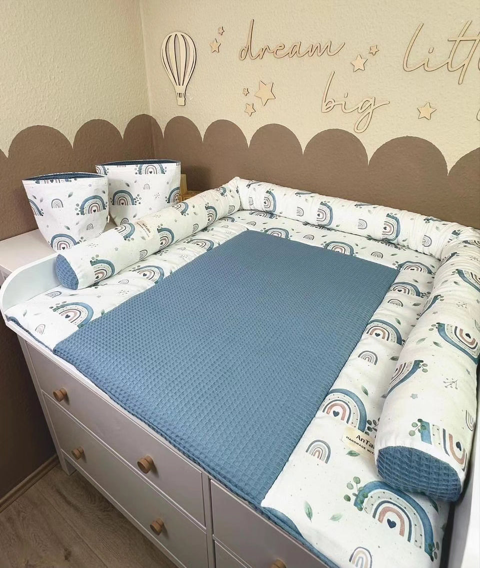 Wickelauflagen Set 5tlg. Regenbogen blau/waffelpique jeansblau