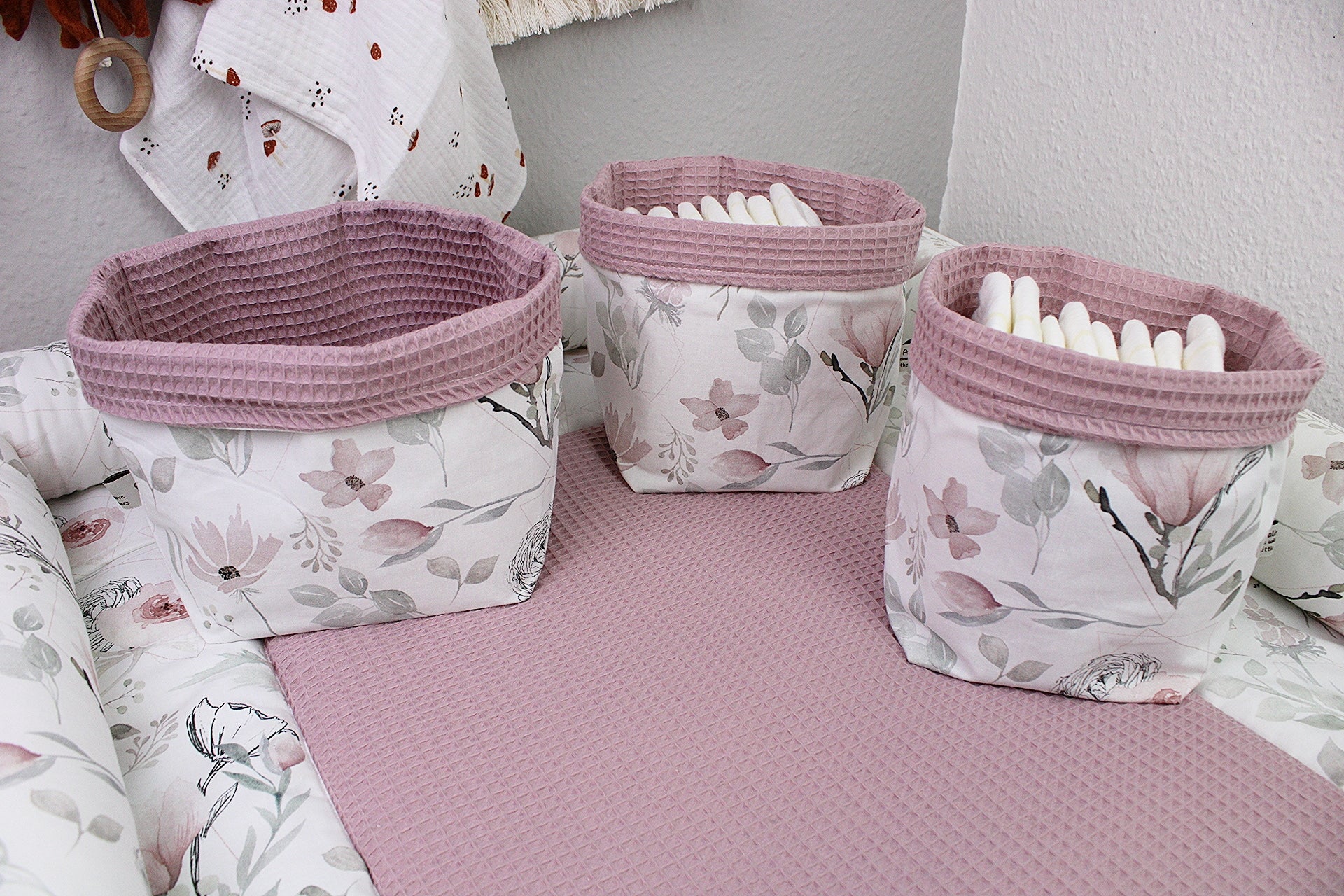 Die Utensilo sind perfekt für Deinen Wickeltisch geeignet. Die unterschiedlichen Größen bieten Platz für Windeln, Feuchtücher, Creme und Co.